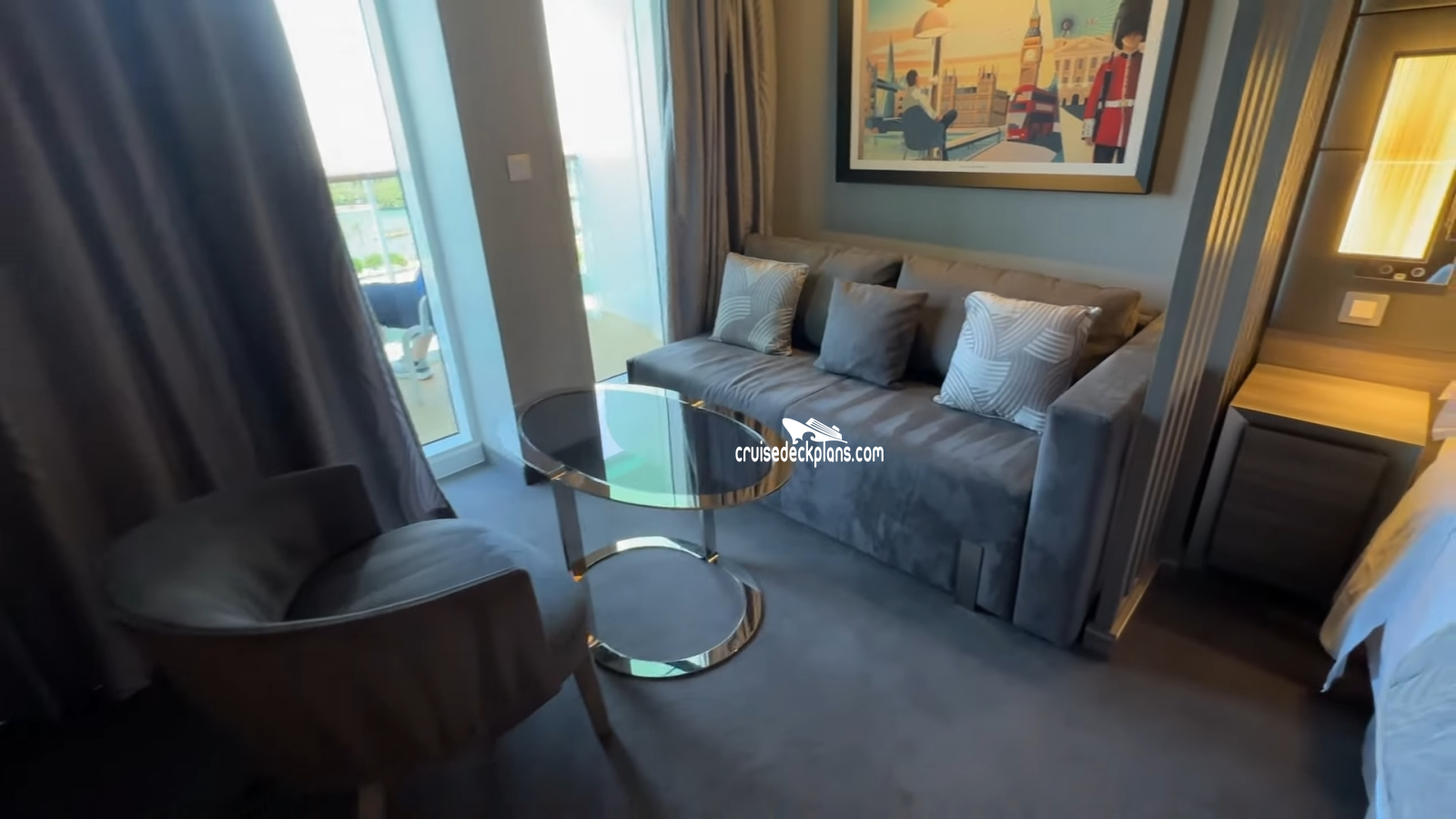 Scroll over cabin (stateroom) tiles below to click and watch videos. Cruisedeckplans.com shows up to 10 of the most recent videos added to our collection on this page. Be sure to click the link in the section below to see other cabins we have videos for. The date shown is the date video was published. Use this to see decor changes.
