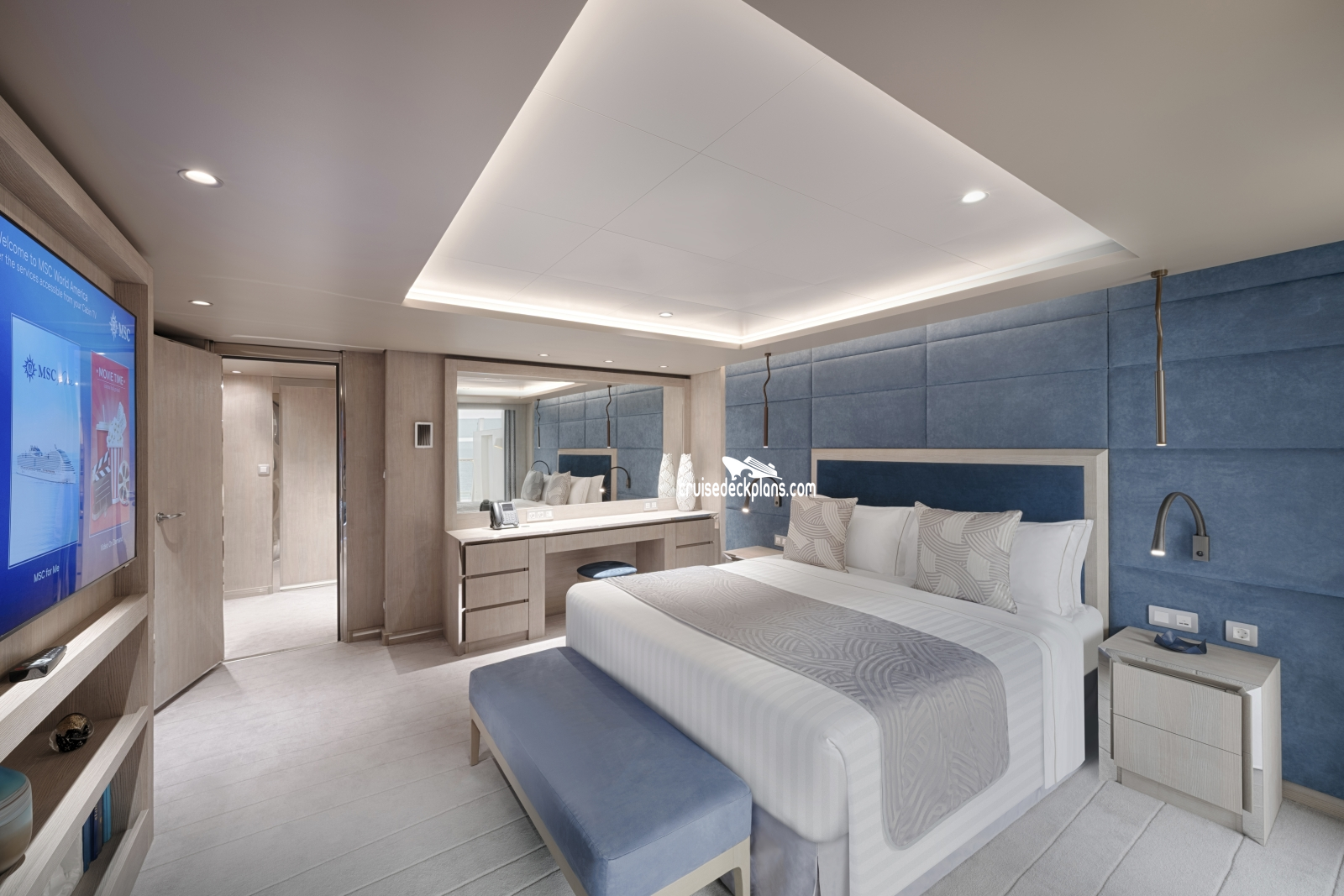 MSC World America MSC Yacht Club Owners Suite cabin location, stateroom cabin videos, stateroom cabin pictures, floor plans, diagrams, stateroom features and perks. Cruisedeckplans.com also provides links to actual stateroom cabin pictures and videos on this page. You can see details and floor plans for all of MSC World America's different stateroom cabin categories on the NEW cabins page.