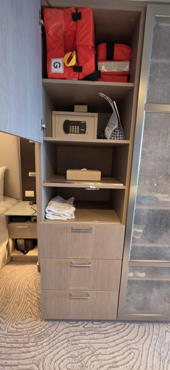 - Some cabins have bed close to the bathroom, others have closet close to the bathroom.