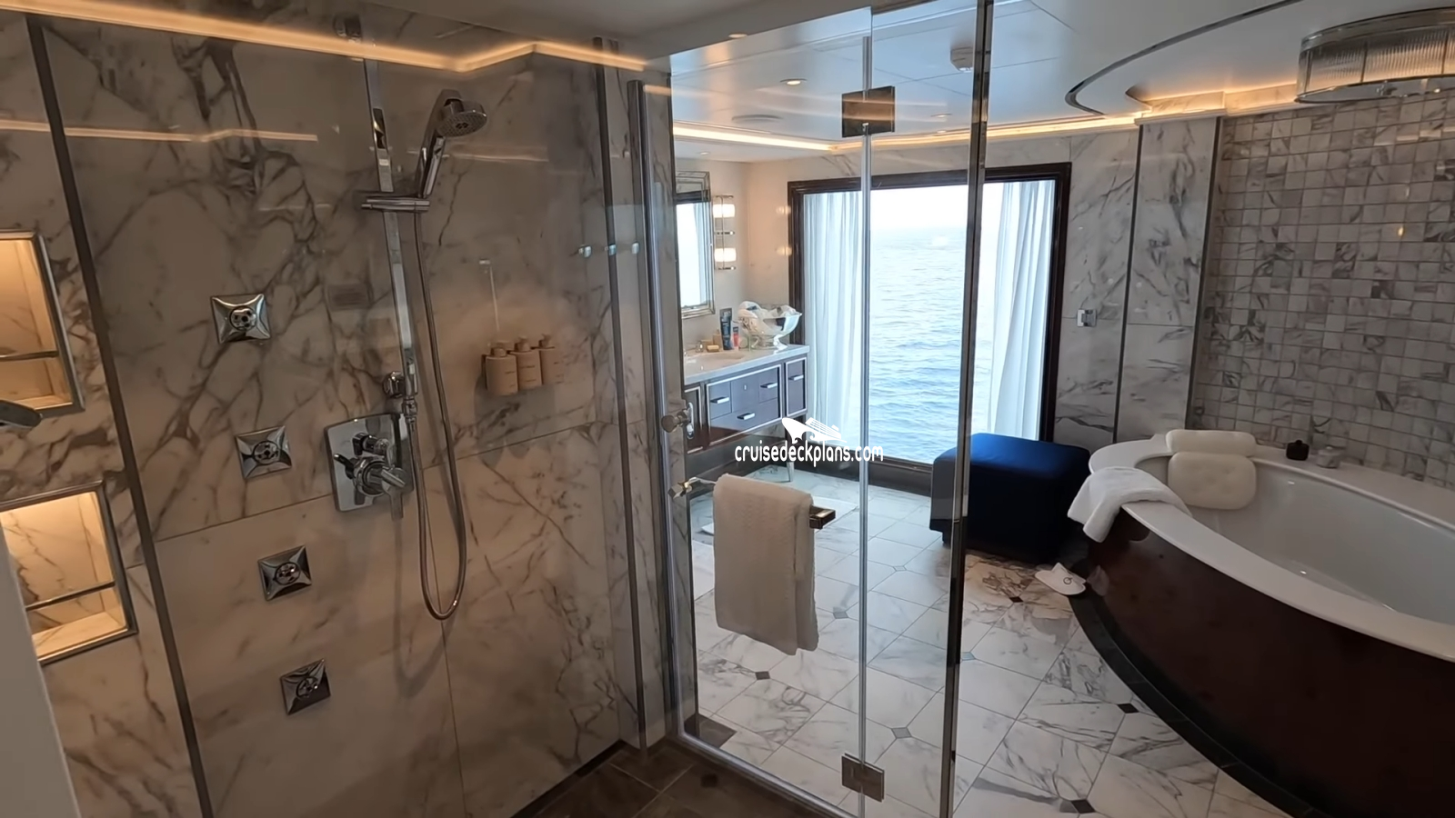 Oceania Allura Owner Suite cabin location, stateroom cabin videos, stateroom cabin pictures, floor plans, diagrams, stateroom features and perks. Cruisedeckplans.com also provides links to actual stateroom cabin pictures and videos on this page. You can see details and floor plans for all of Oceania Allura's different stateroom cabin categories on the NEW cabins page.