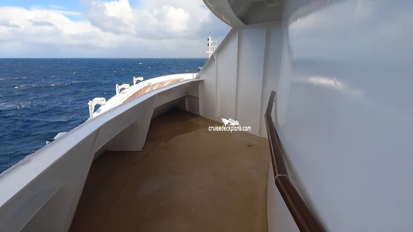 Some cabins up to 50 square feet larger. Balcony size ranges from 45 to 62 square feet. Forward facing category MB staterooms are 166 to 196 square feet plus 75 square foot balcony. Forward facing category M2 is 229 to 283 square feet plus 129 to 185 square foot balcony.