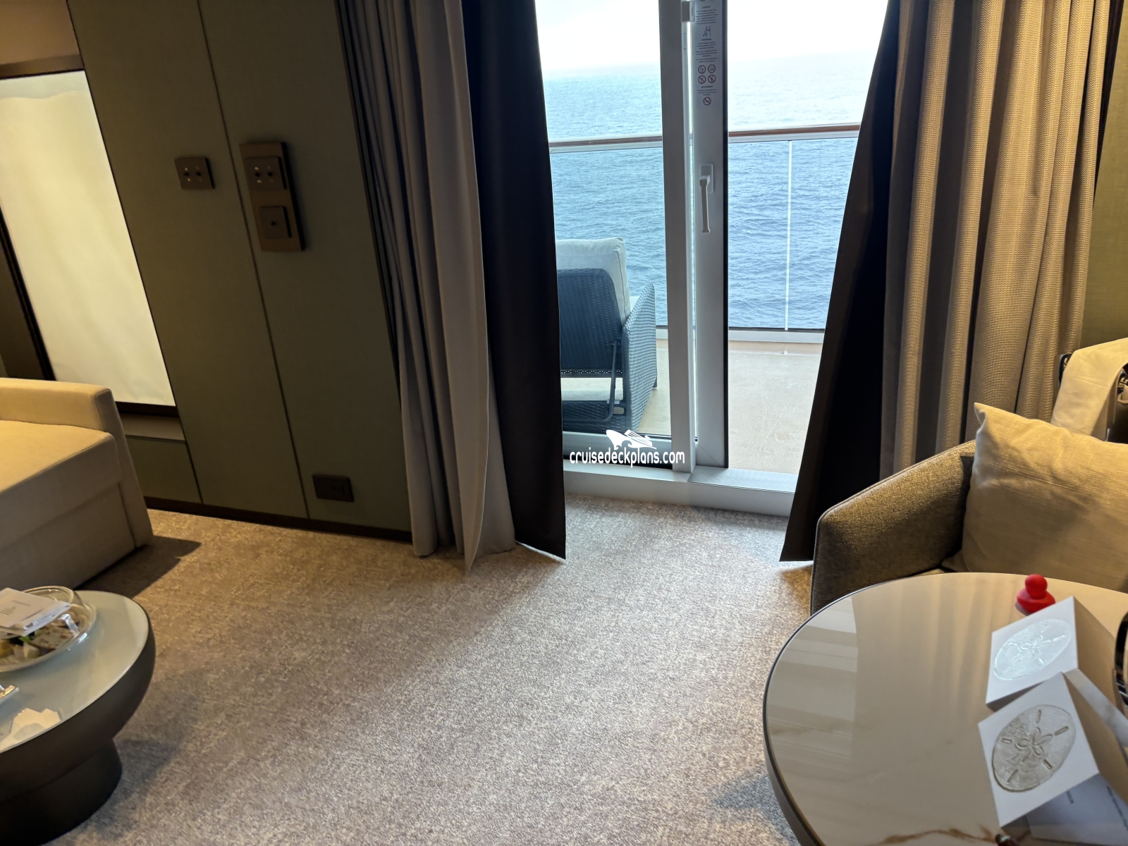 Butler Service / Concierge Service / Priority Check In / Priority Debarkation / Priority Tender Boarding / Dining in the Stateroom / Welcome Champagne / Exclusive Lounge / Exclusive Pool / Exclusive Outdoor Lounge / Thick Cotton Robes / Pillow Menu / Espresso & Cappuccino machine / Special suite menus / Bliss collection pillow-top mattress / Treats delivered to door every night / Courtyard valet / Escort to suite /