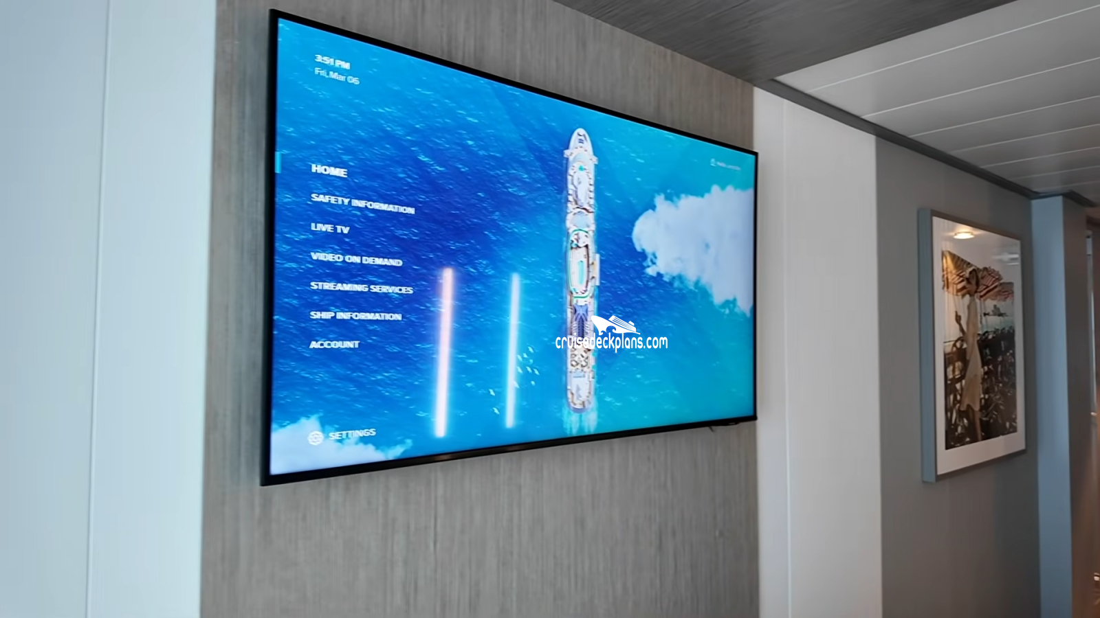 - Interactive flat-screen tv (order excursions, room service, watch movies)