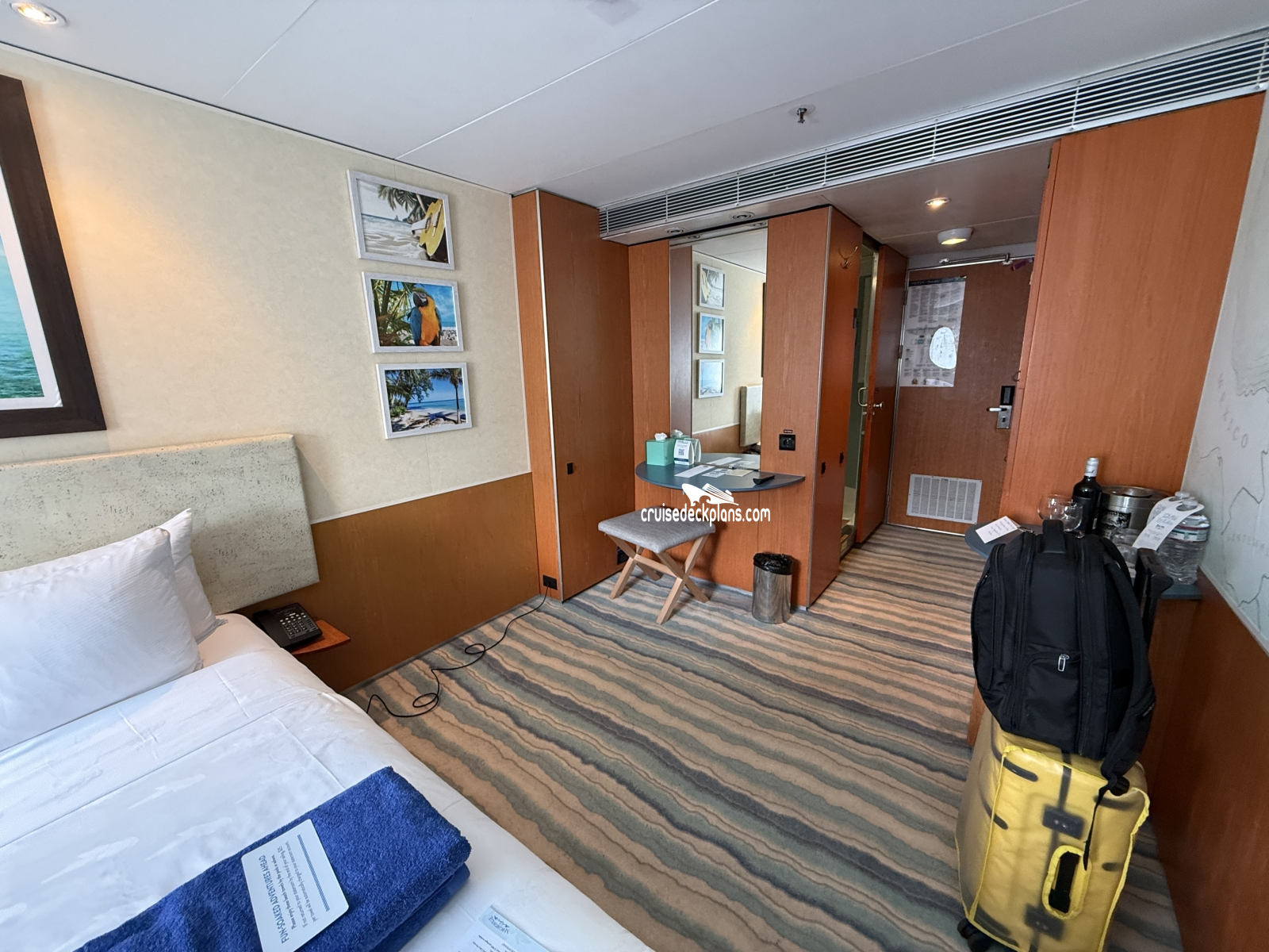 Scroll over cabin (stateroom) tiles below to click and watch videos. Cruisedeckplans.com shows up to 10 of the most recent videos added to our collection on this page. Be sure to click the link in the section below to see other cabins we have videos for. The date shown is the date video was published. Use this to see decor changes.