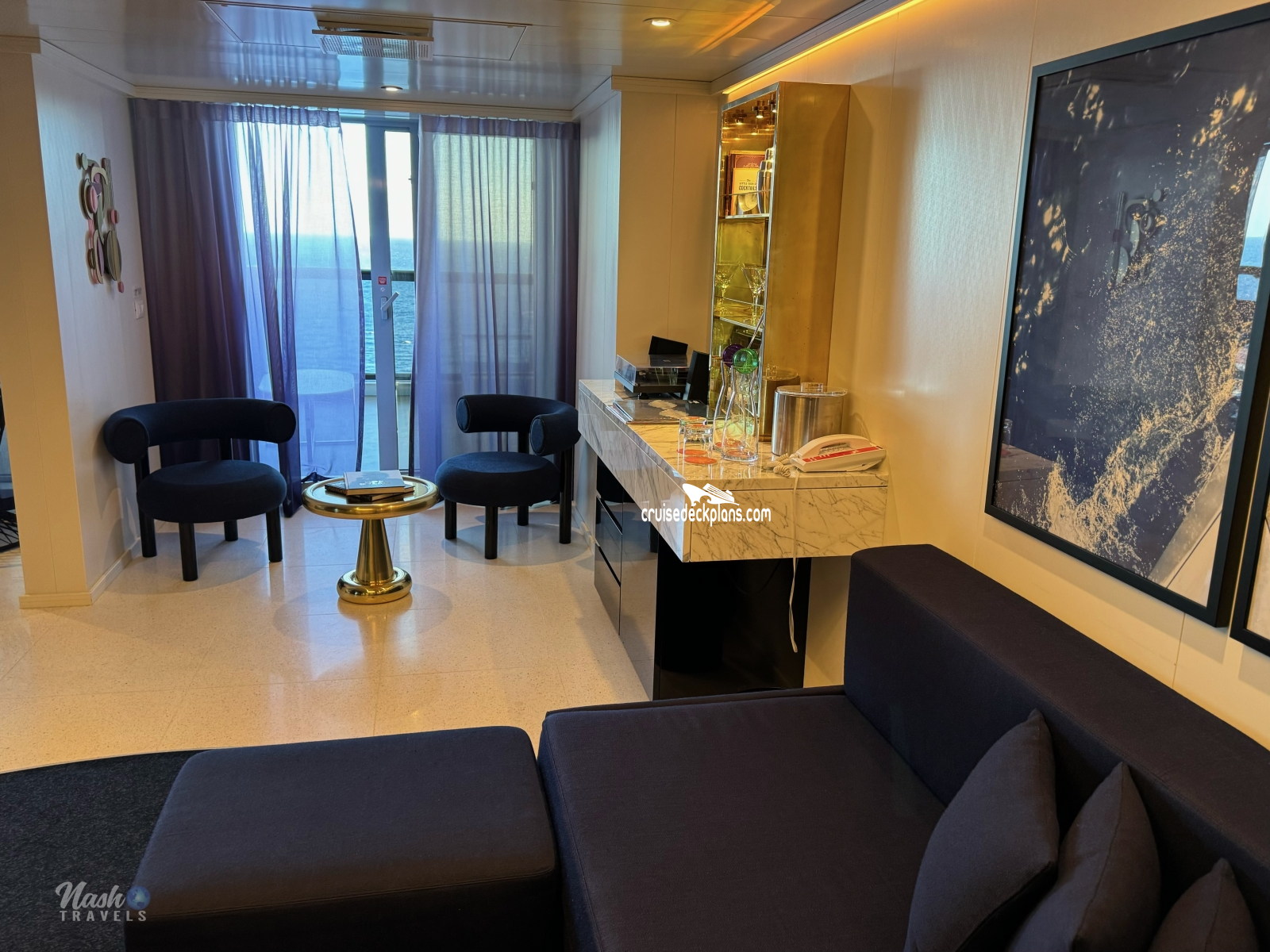 Early acess to bookable shore excursions / Complimentary local transportation to port / Fully stocked in-room bar / Luggage assistance (unpacking and repacking) / Exclusive behind-the-scenes tour / Membership to Richards Rooftop /
