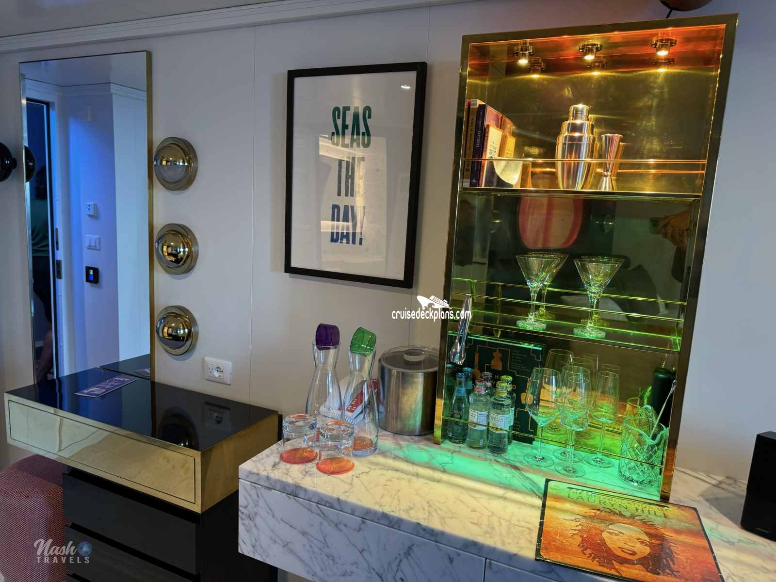 Early acess to bookable shore excursions / Complimentary local transportation to port / Fully stocked in-room bar / Luggage assistance (unpacking and repacking) / Exclusive behind-the-scenes tour / Membership to Richards Rooftop /