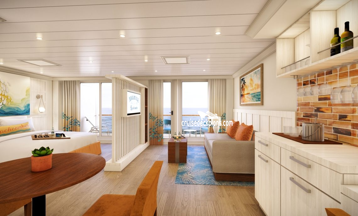 Listing of decks with Signature Grand Suite cabins and category codes available on those decks:MAS Beachcomber Signature Grand Suite pictures