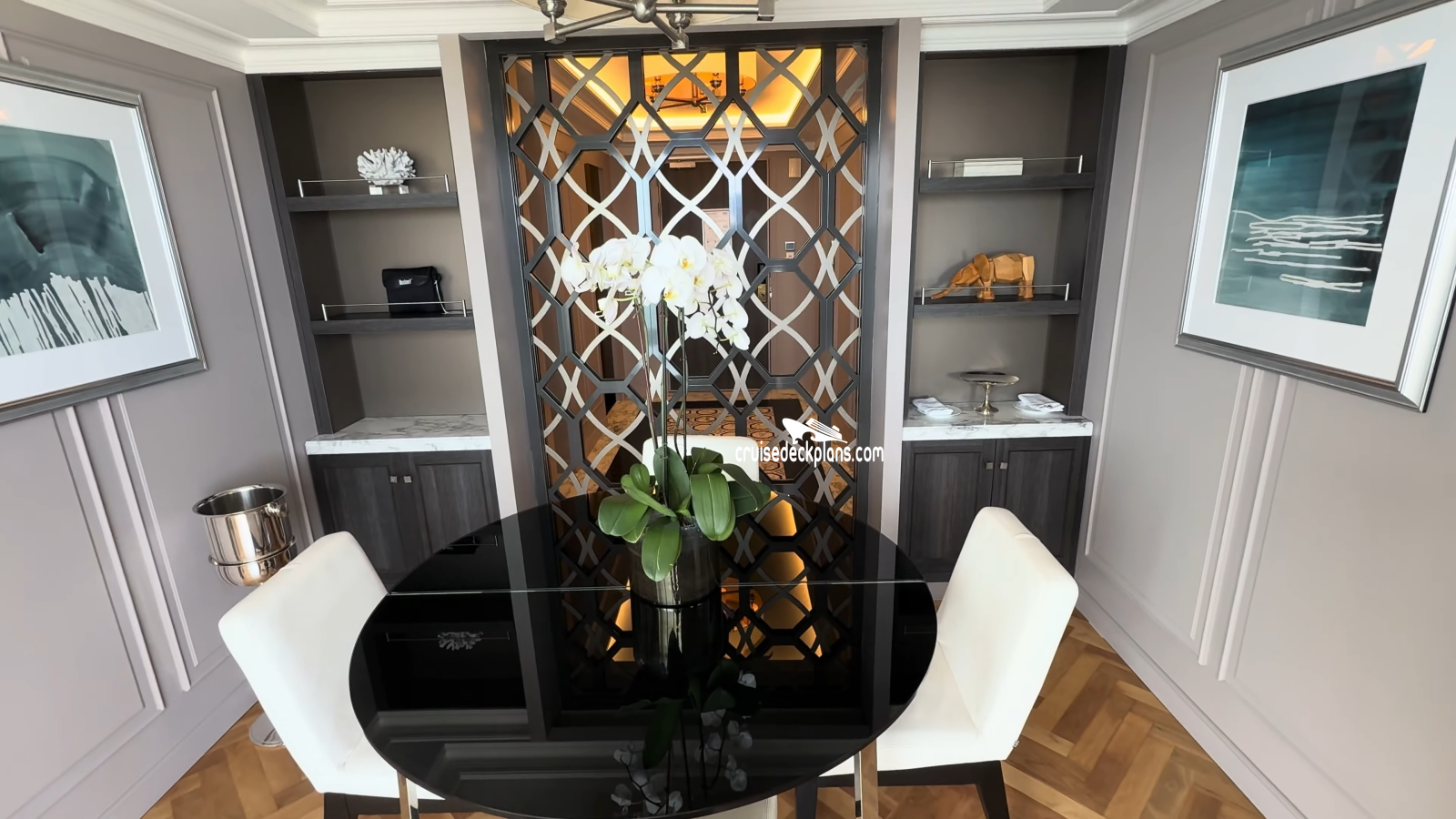 Crystal Serenity Crystal Penthouse Suite cabin location, stateroom cabin videos, stateroom cabin pictures, floor plans, diagrams, stateroom features and perks. Cruisedeckplans.com also provides links to actual stateroom cabin pictures and videos on this page. You can see details and floor plans for all of Crystal Serenity's different stateroom cabin categories on the NEW cabins page.