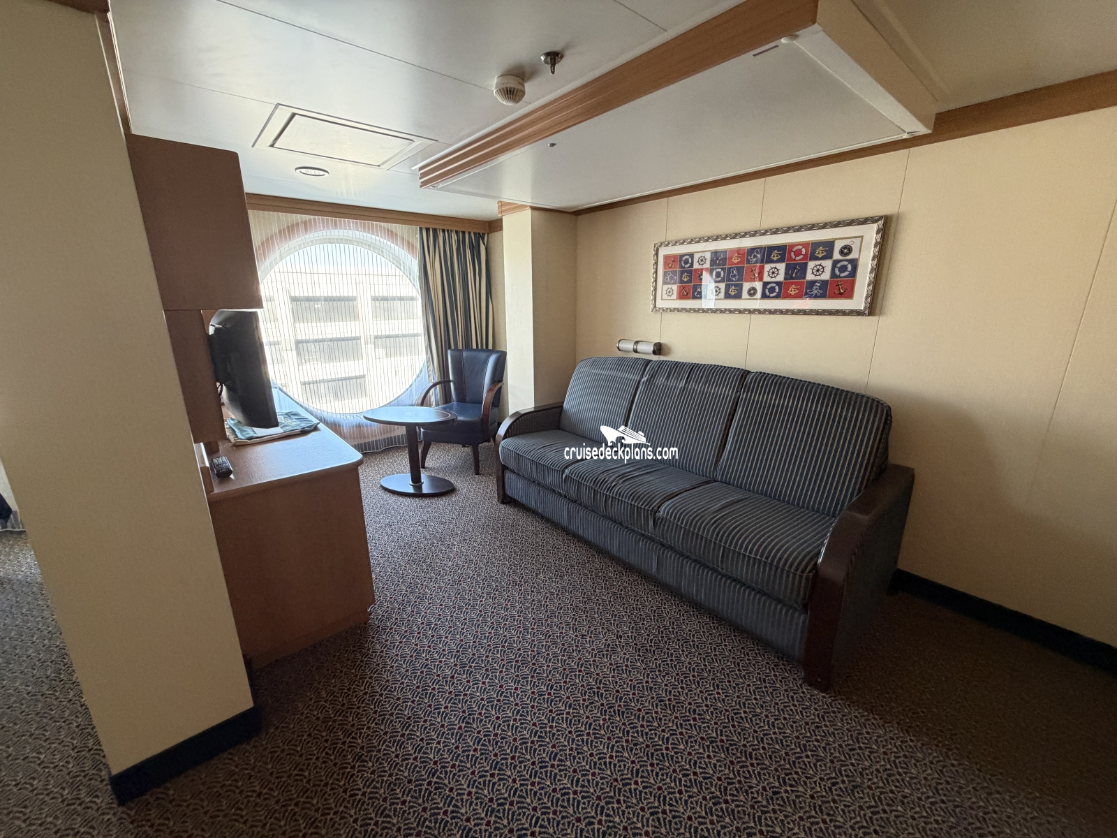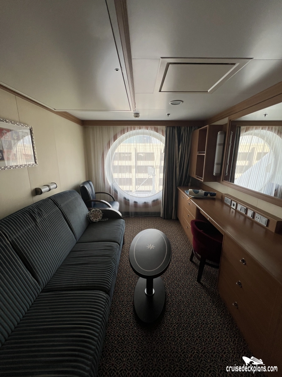 - One large porthole window with built in seating (nearly 5ft in diameter)