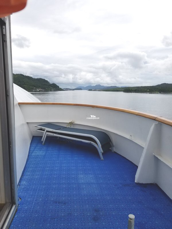 The balcony of these cabins is on the front part of the ship and there is not a lot of wind protection. This will make the balcony unusable at times when the wind is heavy while the ship is underway. In such cases the furniture may need to be tied down.