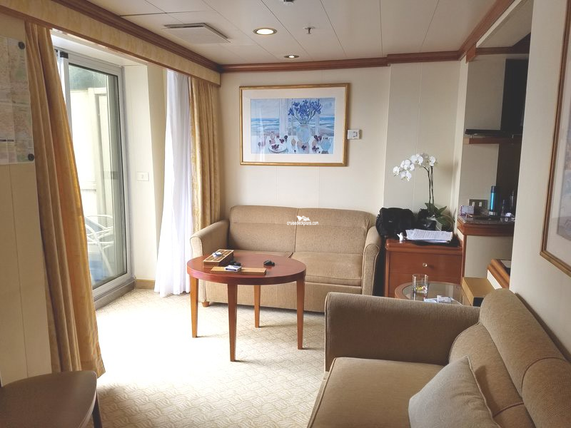 - A mini-suite and interior stateroom that are connected by a large living room with two sofa beds