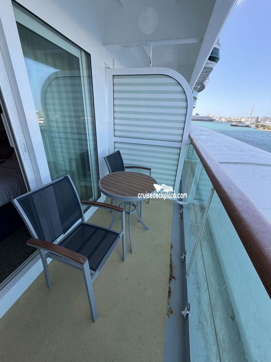 Staterooms 7064, 7066, 7142, 7564, 7506, 8058, 8060, 8558, 8560, 8162, 8164, 8662 & 8664 have partially obstructed views. Some balcony sizes are as small as 27 square feet.