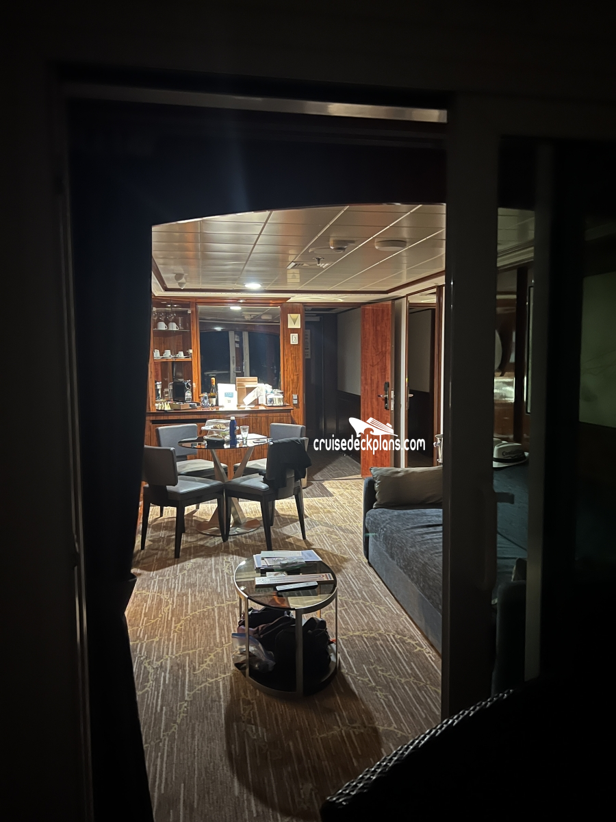 Butler Service / Concierge Service / Priority Check In / Priority Debarkation / Priority Tender Boarding / Dining in the Stateroom / Welcome Champagne / Exclusive Lounge / Exclusive Pool / Exclusive Outdoor Lounge / Thick Cotton Robes / Pillow Menu / Espresso & Cappuccino machine / Special suite menus / Bliss collection pillow-top mattress / Treats delivered to door every night / Courtyard valet / Escort to suite /