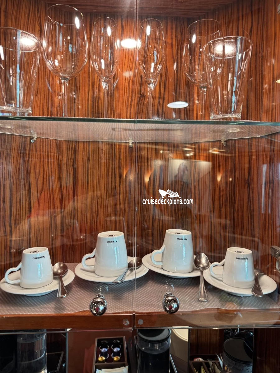 Butler Service / Concierge Service / Priority Check In / Priority Debarkation / Priority Tender Boarding / Welcome Champagne / Thick Cotton Robes / Pillow Menu / Espresso & Cappuccino machine / Special suite menus / Bliss collection pillow-top mattress / Treats delivered to door every night /