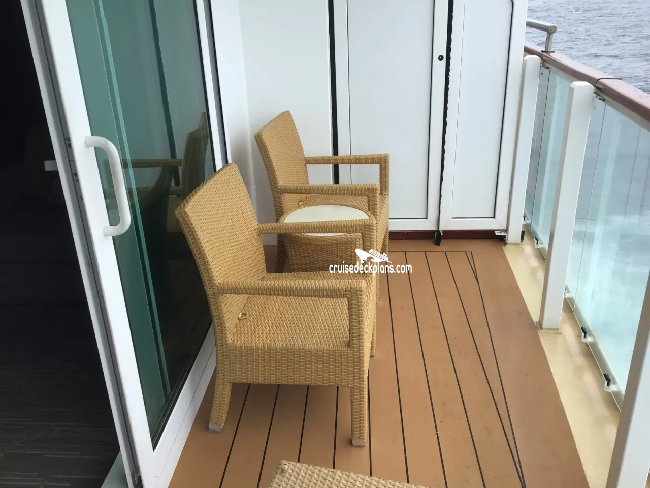 Cabin size for category SE ranges from 294 to 357 square feet with 144 to 266 square foot balcony. Cabin size for category SF is 286 square feet plus 65 square foot balcony.