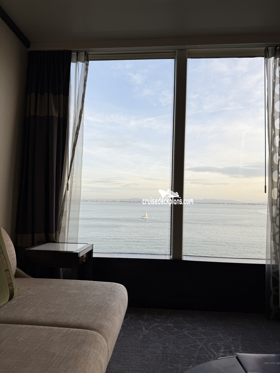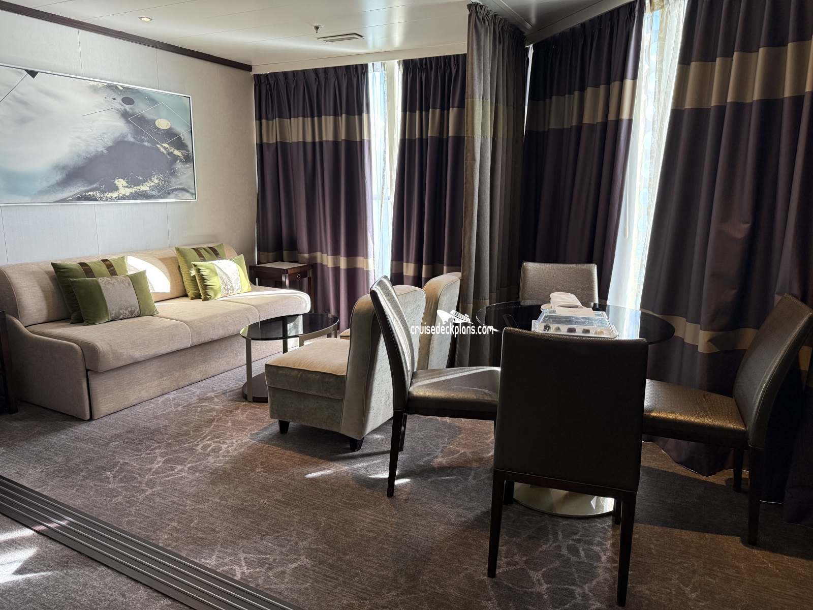 Butler Service / Concierge Service / Priority Check In / Priority Debarkation / Priority Tender Boarding / Welcome Champagne / Thick Cotton Robes / Pillow Menu / Espresso & Cappuccino machine / Special suite menus / Bliss collection pillow-top mattress / Treats delivered to door every night /