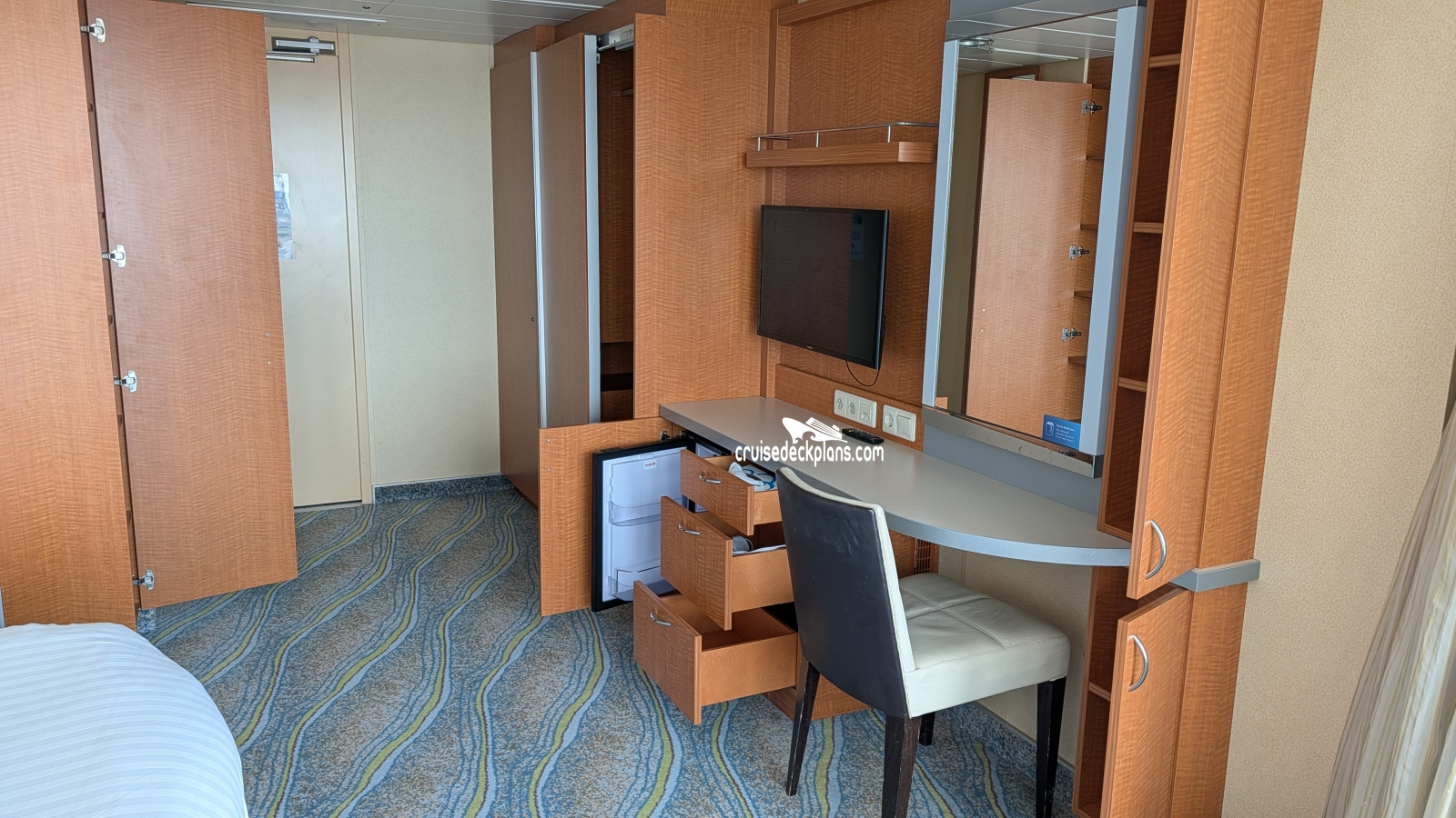 Scroll over cabin (stateroom) tiles below to click and watch videos. Cruisedeckplans.com shows up to 10 of the most recent videos added to our collection on this page. Be sure to click the link in the section below to see other cabins we have videos for. The date shown is the date video was published. Use this to see decor changes.