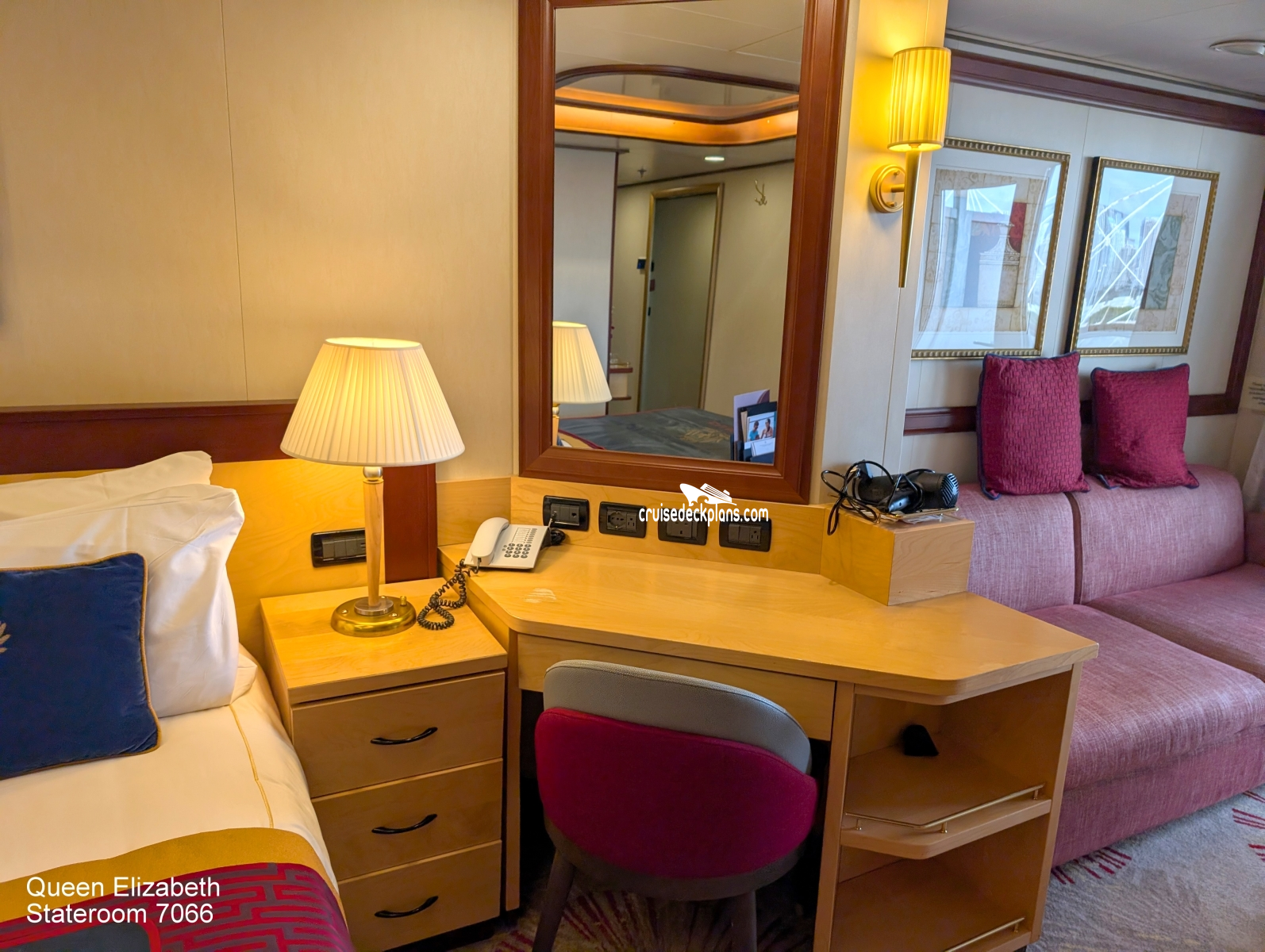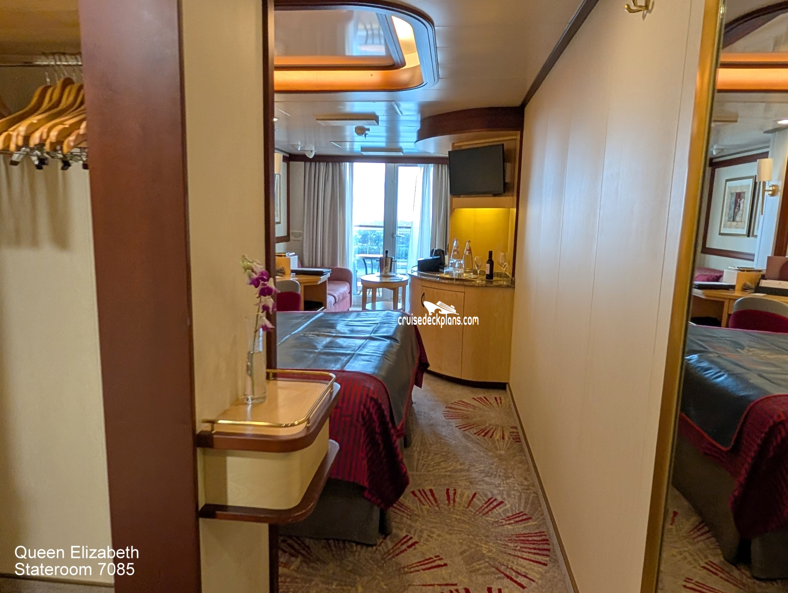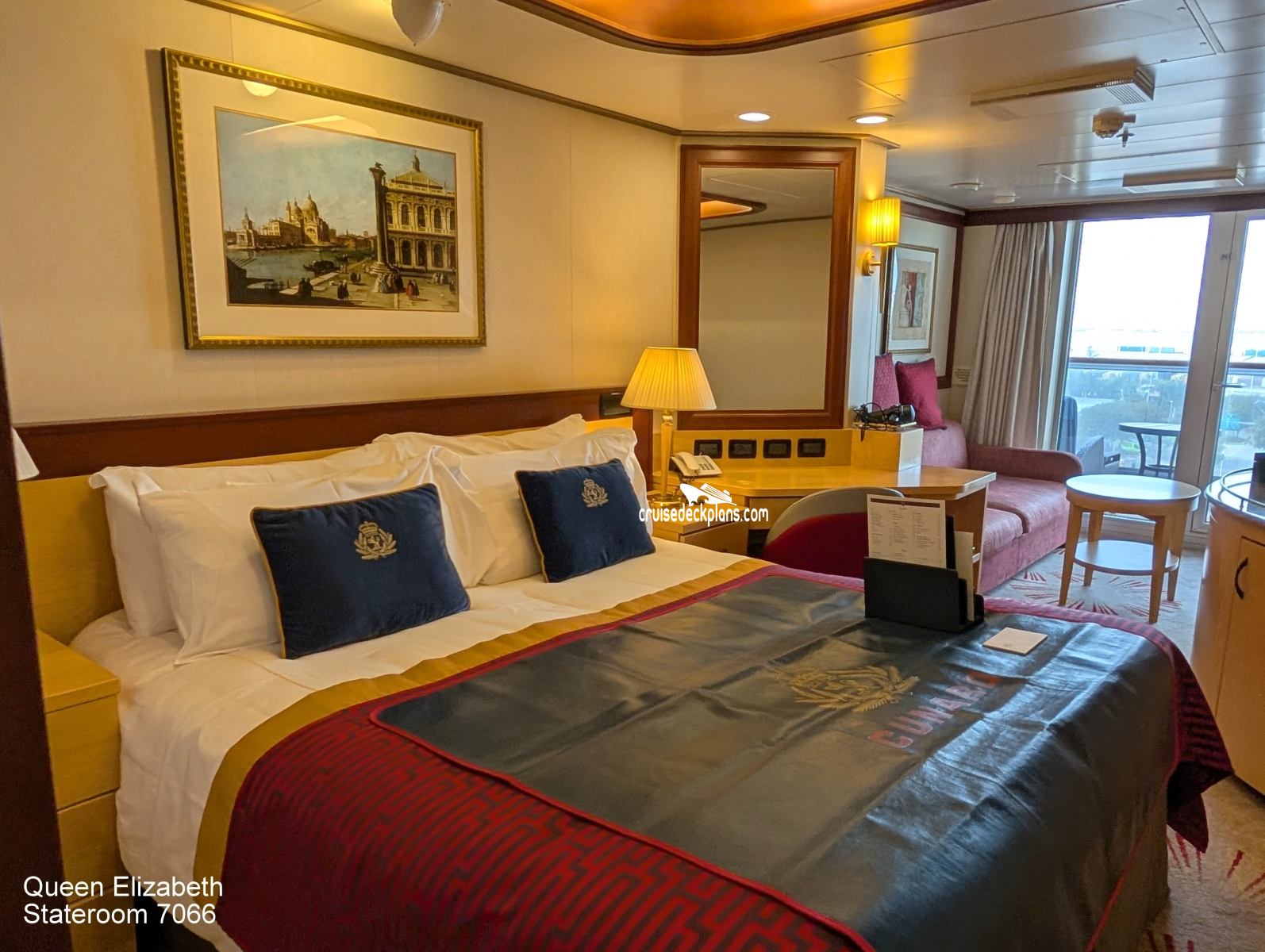 Queen Elizabeth Princess Suite cabin location, stateroom cabin videos, stateroom cabin pictures, floor plans, diagrams, stateroom features and perks. Cruisedeckplans.com also provides links to actual stateroom cabin pictures and videos on this page. You can see details and floor plans for all of Queen Elizabeth's different stateroom cabin categories on the NEW cabins page.