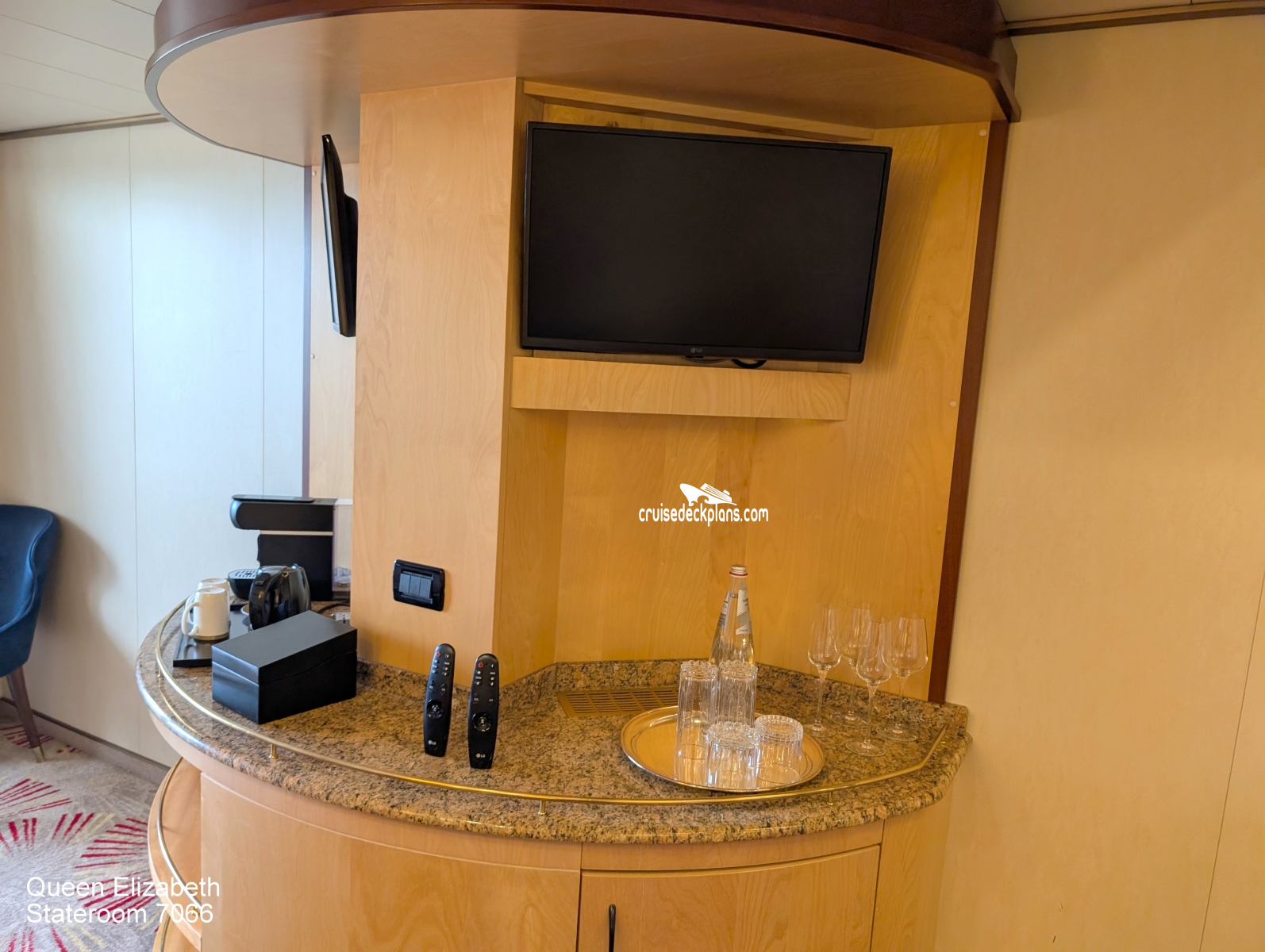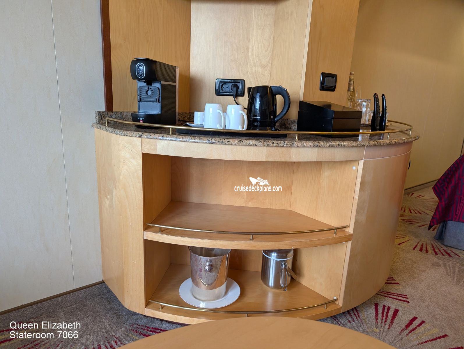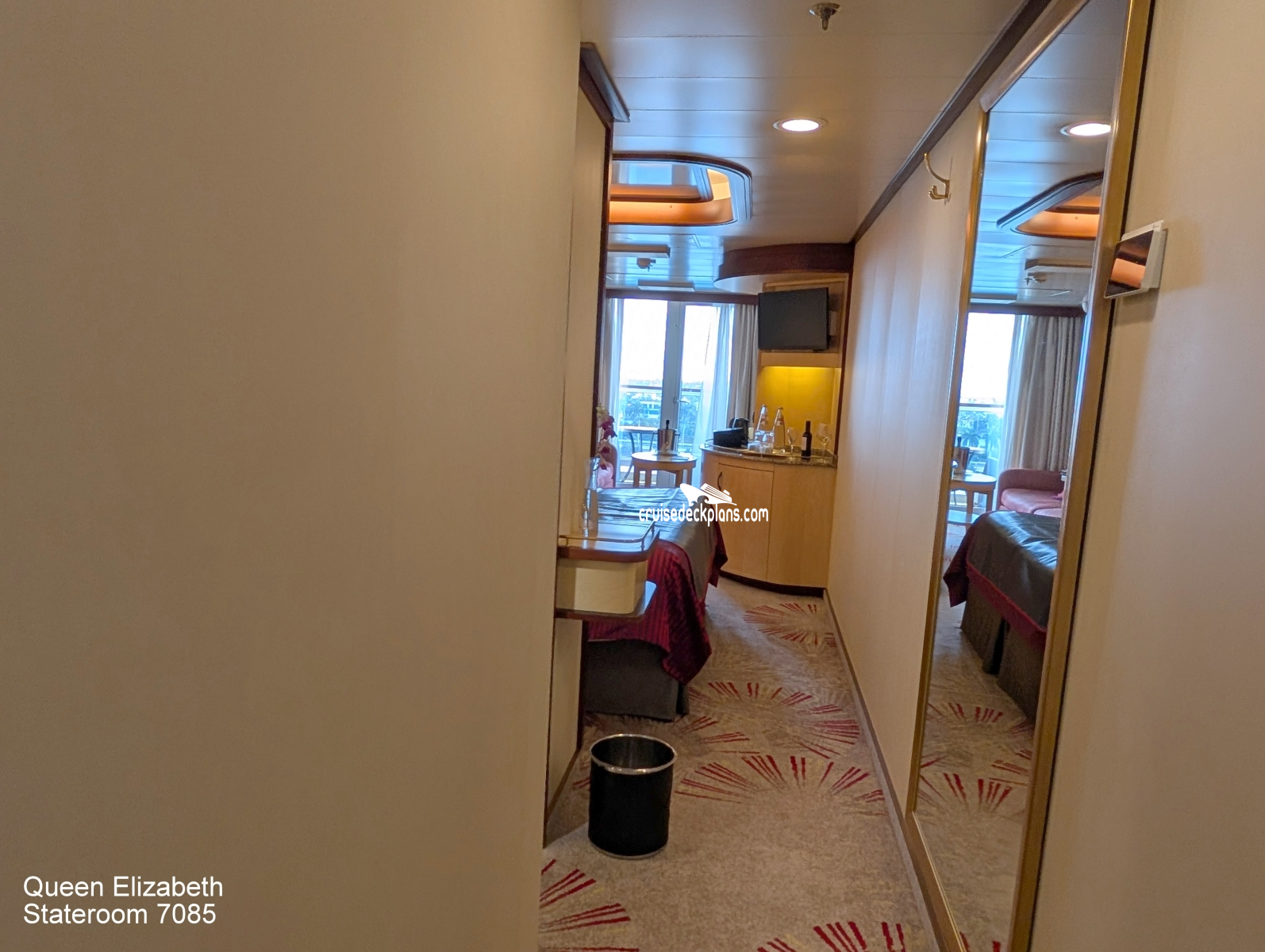 Queen Elizabeth Princess Suite cabin location, stateroom cabin videos, stateroom cabin pictures, floor plans, diagrams, stateroom features and perks. Cruisedeckplans.com also provides links to actual stateroom cabin pictures and videos on this page. You can see details and floor plans for all of Queen Elizabeth's different stateroom cabin categories on the NEW cabins page.