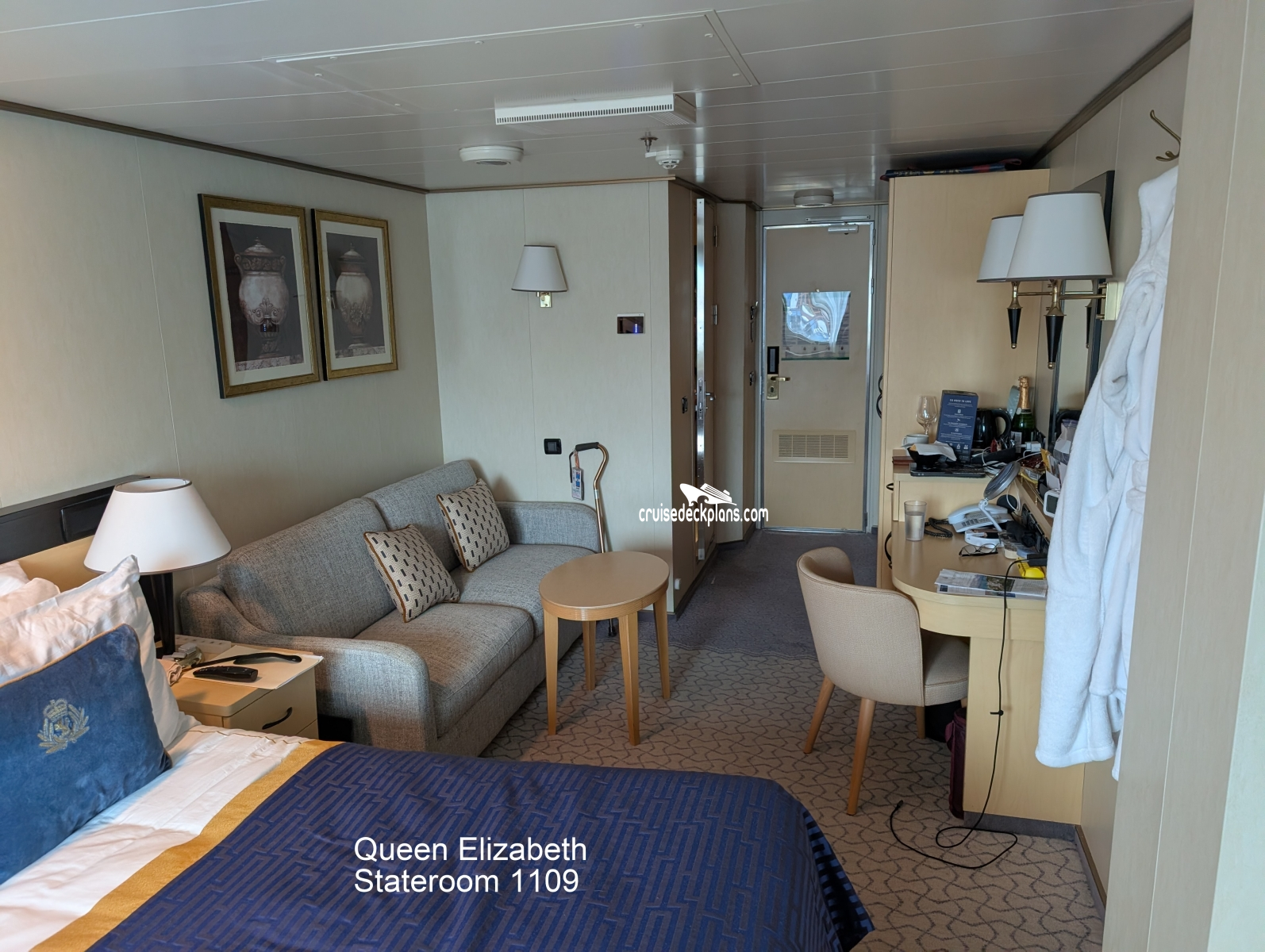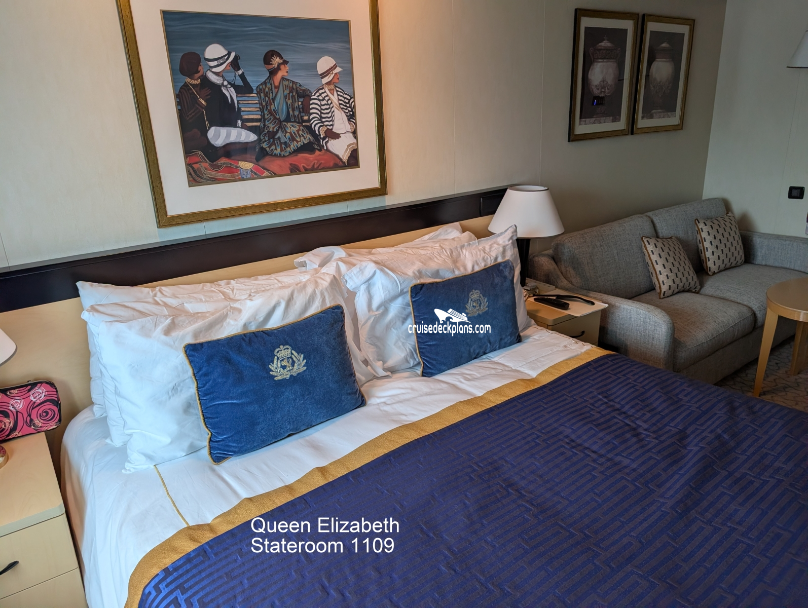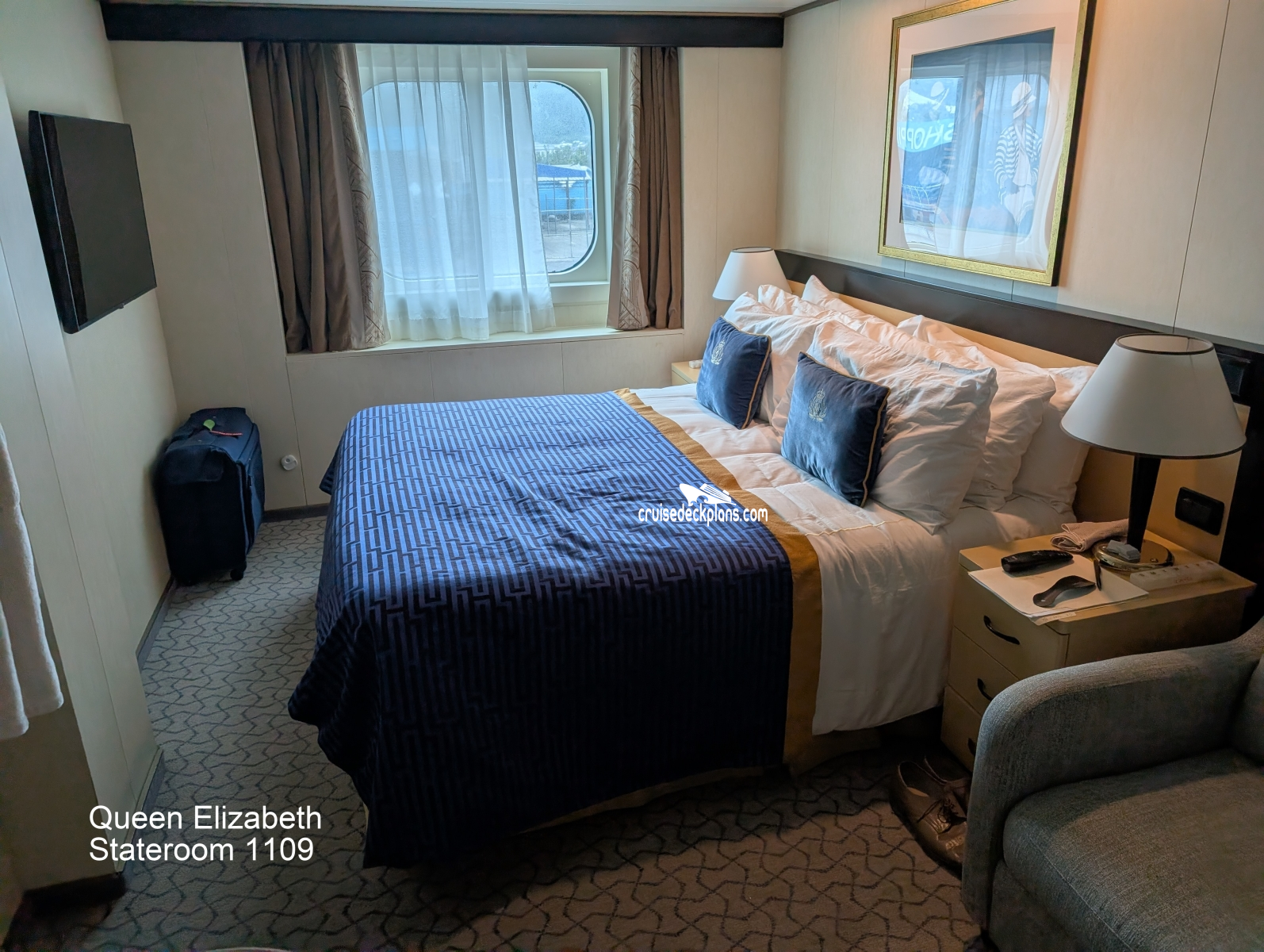 Queen Elizabeth Oceanview cabin location, stateroom cabin videos, stateroom cabin pictures, floor plans, diagrams, stateroom features and perks. Cruisedeckplans.com also provides links to actual stateroom cabin pictures and videos on this page. You can see details and floor plans for all of Queen Elizabeth's different stateroom cabin categories on the NEW cabins page.
