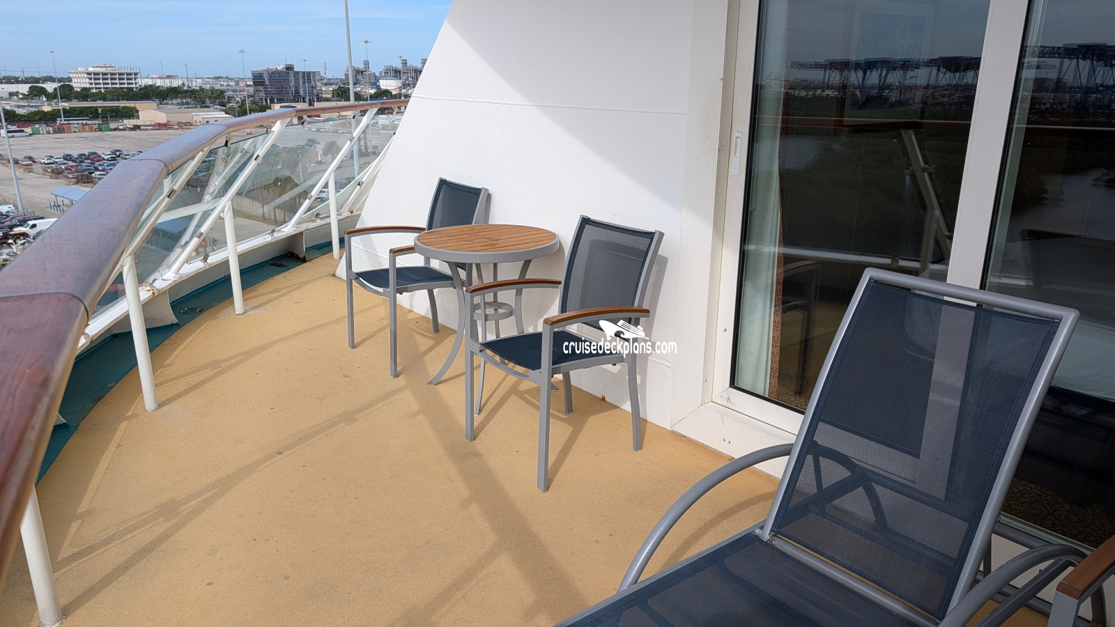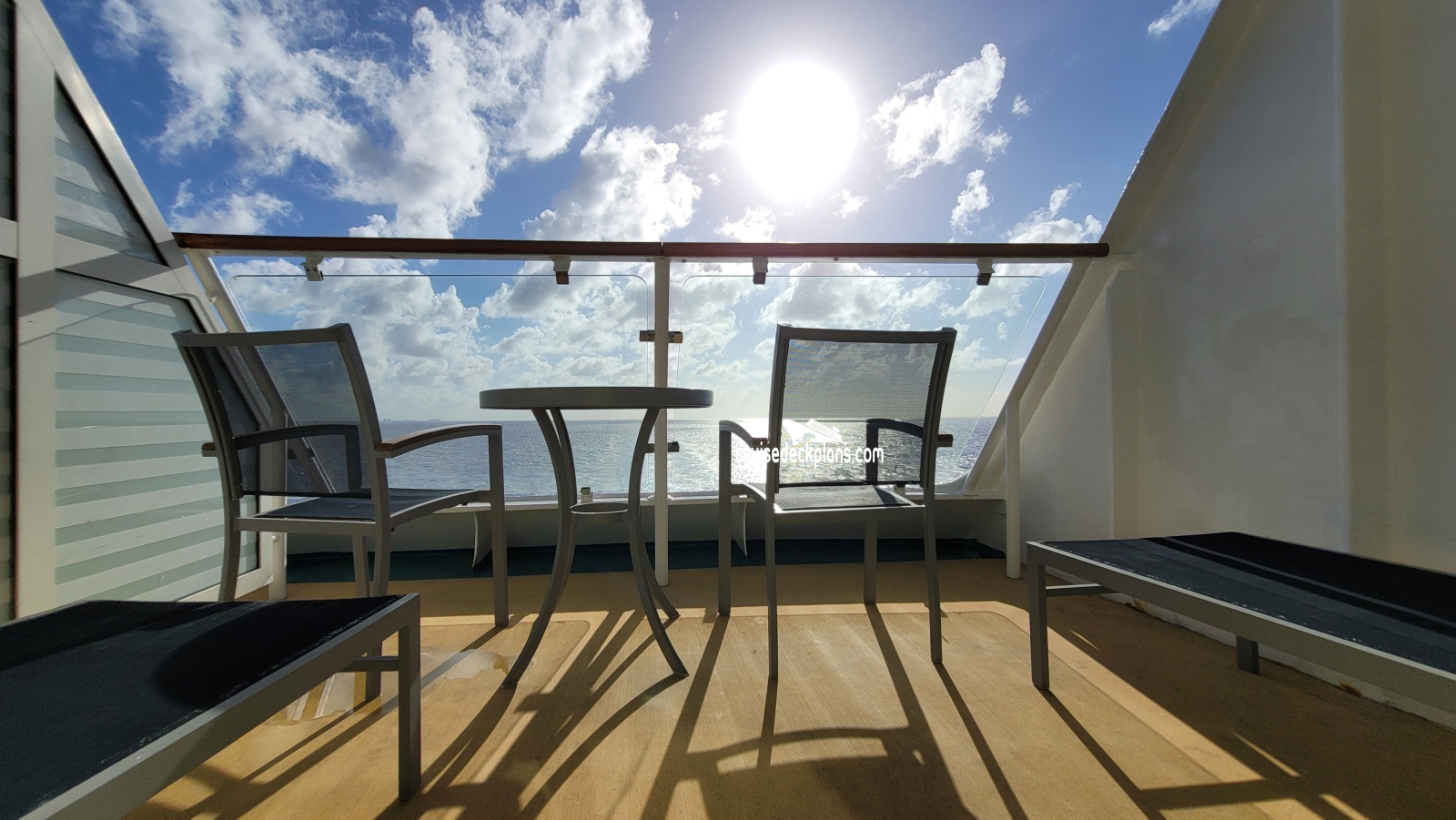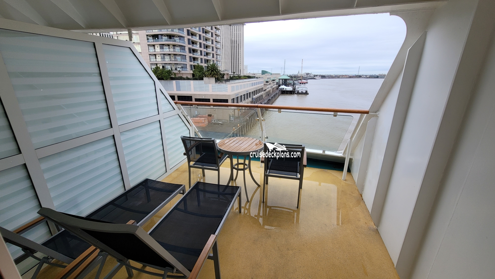 Stateroom 9252 & 9652 have obstructed views from window washing platform. Some balcony sizes are up to 172 square feet.