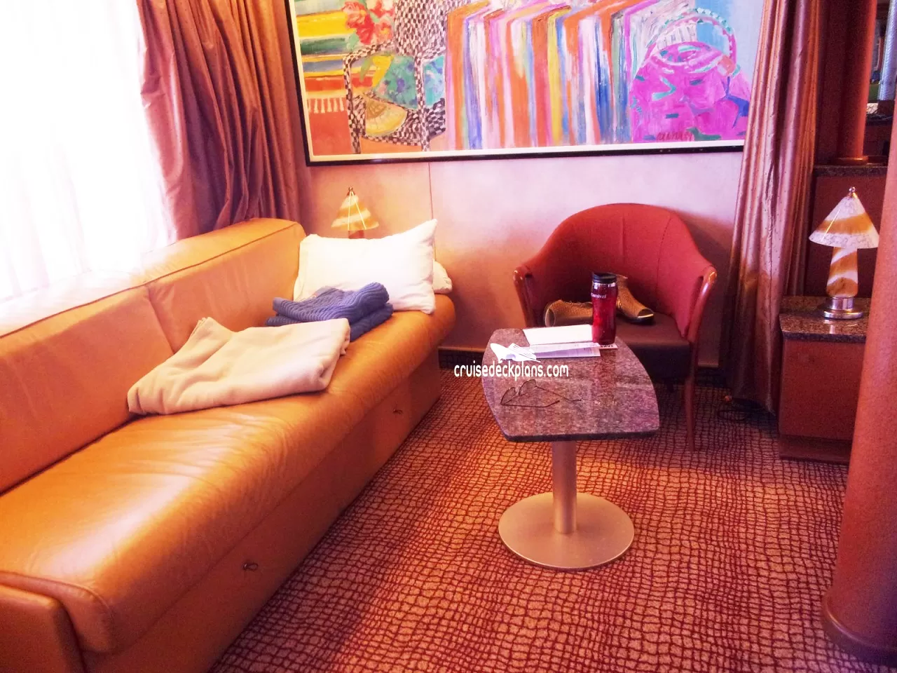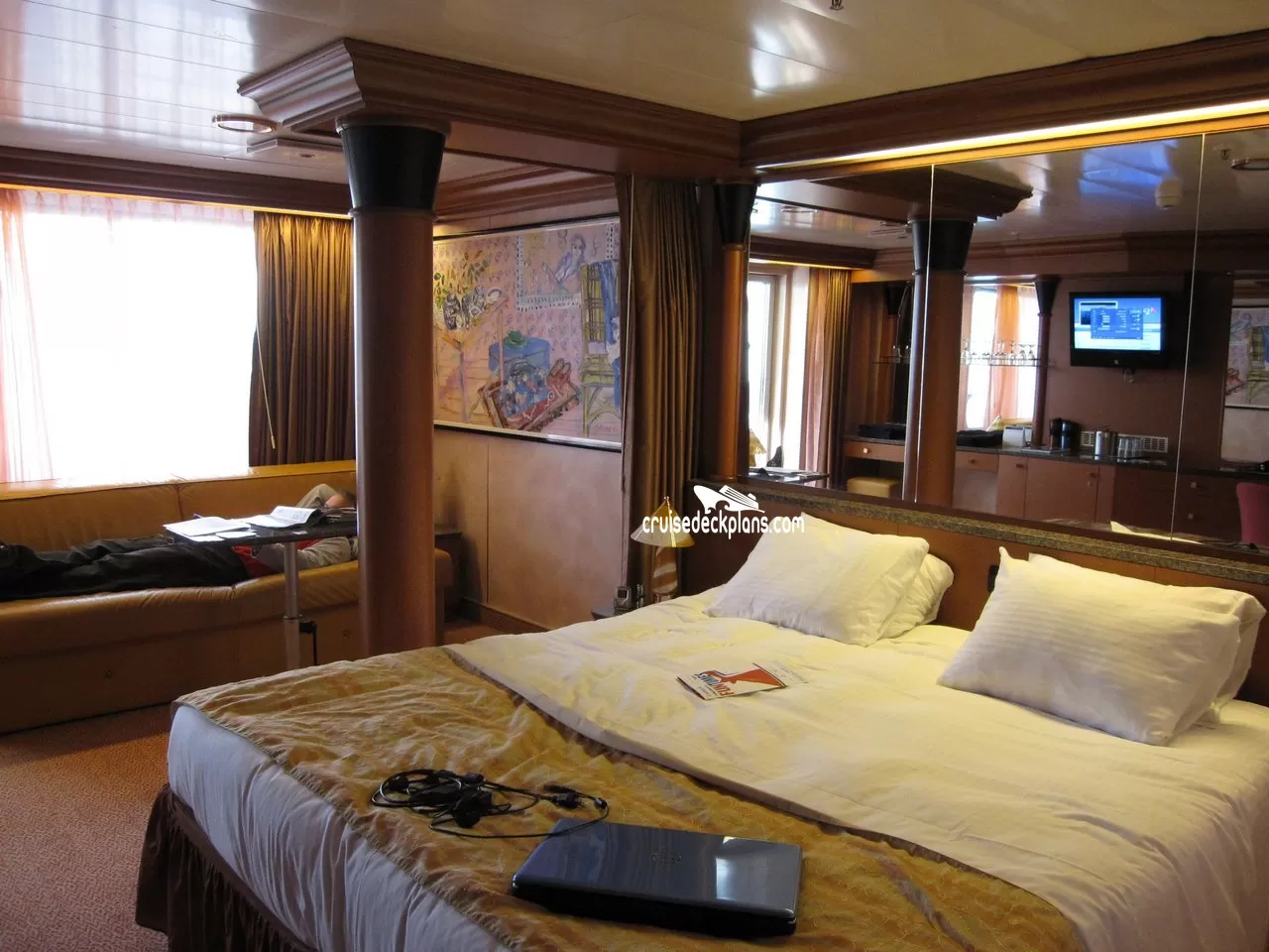 Carnival Ecstasy Grand Suite cabin location, stateroom cabin videos, stateroom cabin pictures, floor plans, diagrams, stateroom features and perks. Cruisedeckplans.com also provides links to actual stateroom cabin pictures and videos on this page. You can see details and floor plans for all of Carnival Ecstasy's different stateroom cabin categories on the NEW cabins page.