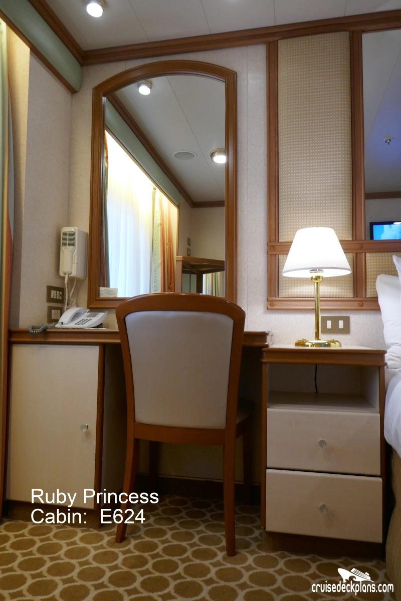 Ruby Princess Oceanview cabin location, stateroom cabin videos, stateroom cabin pictures, floor plans, diagrams, stateroom features and perks. Cruisedeckplans.com also provides links to actual stateroom cabin pictures and videos on this page. You can see details and floor plans for all of Ruby Princess's different stateroom cabin categories on the NEW cabins page.