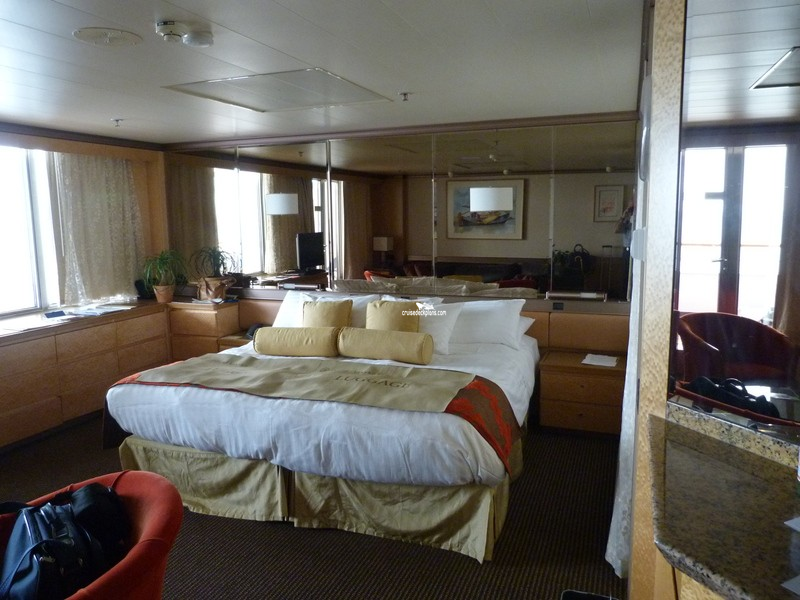 Concierge Service / Priority Check In / Priority Debarkation / Priority Tender Boarding / Afternoon Canapes / Afternoon Tea / Complimentary Shoe Shine / Welcome Champagne / Exclusive Lounge / Exclusive Full Breakfast Restaurant / Priority Dining Reservations / Complimentary Laundry / Thick Cotton Robes / Pillow Menu / Signature Mariner's Dream bed with plush euro-top mattress and finely woven cotton linens / Lighted magnifying mirrors / Massage showerheads / Salon-quality hair dryer / Elemis Aromapure bath products / Flat-panel TV and DVD player / complimentary DVD library / Personalized cruise stationary / Umbrella & binocular usage / Gorgeous corsages and boutonnieres for the first formal night / Cocktail party with ship's officers / Premium duvet / Complimentary bottled water at embarkation / Bose docking station / Complimentary mimosas with in-suite breakfast / In-suite coffee maker and espresso machine. /