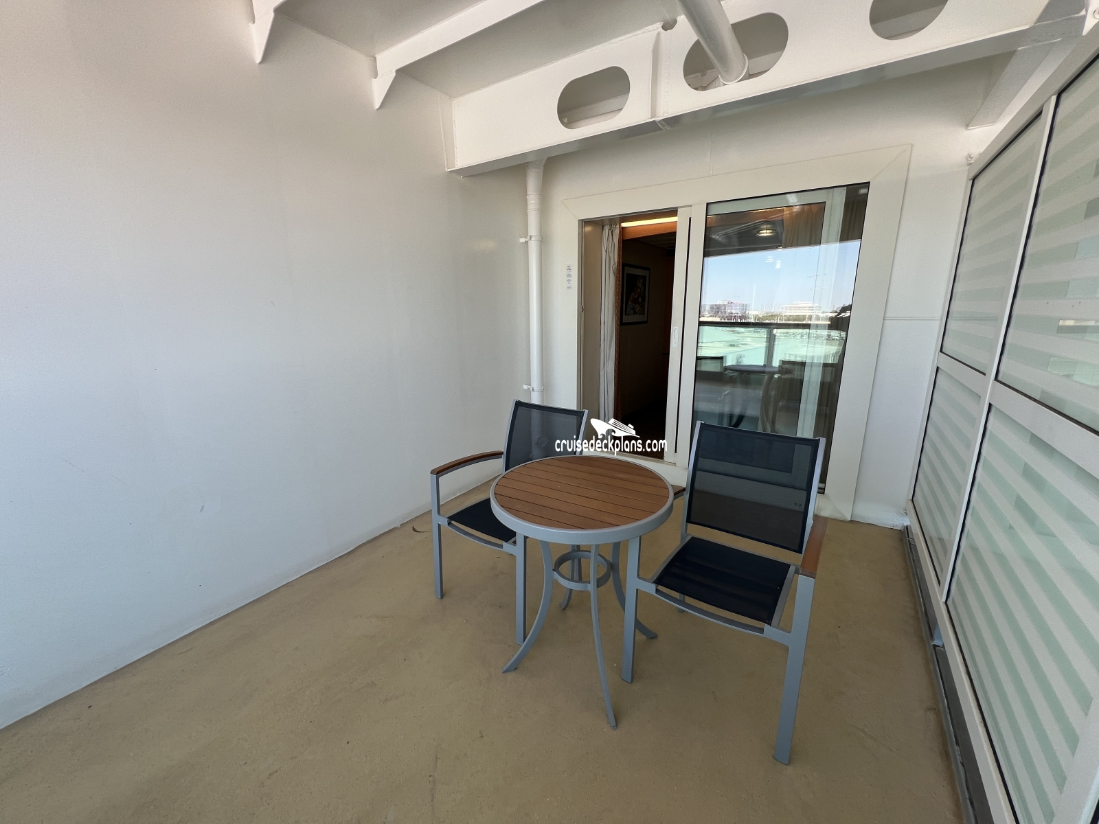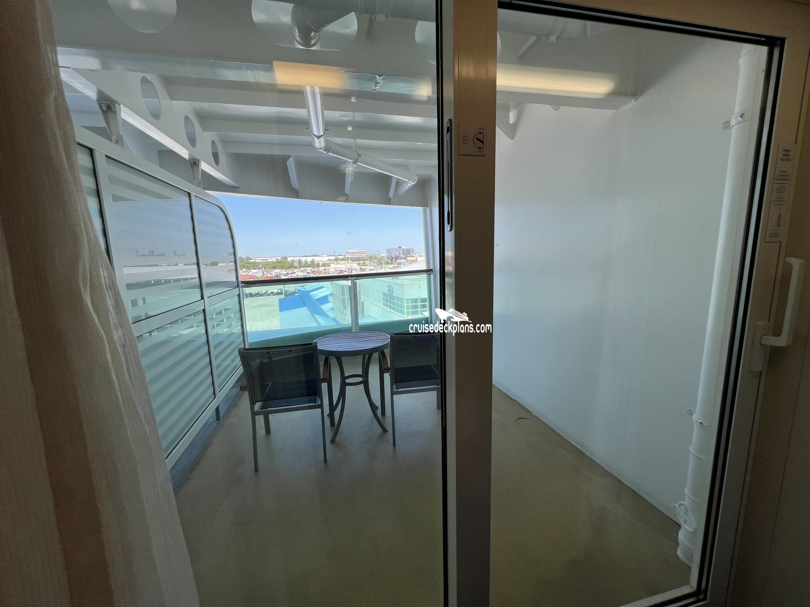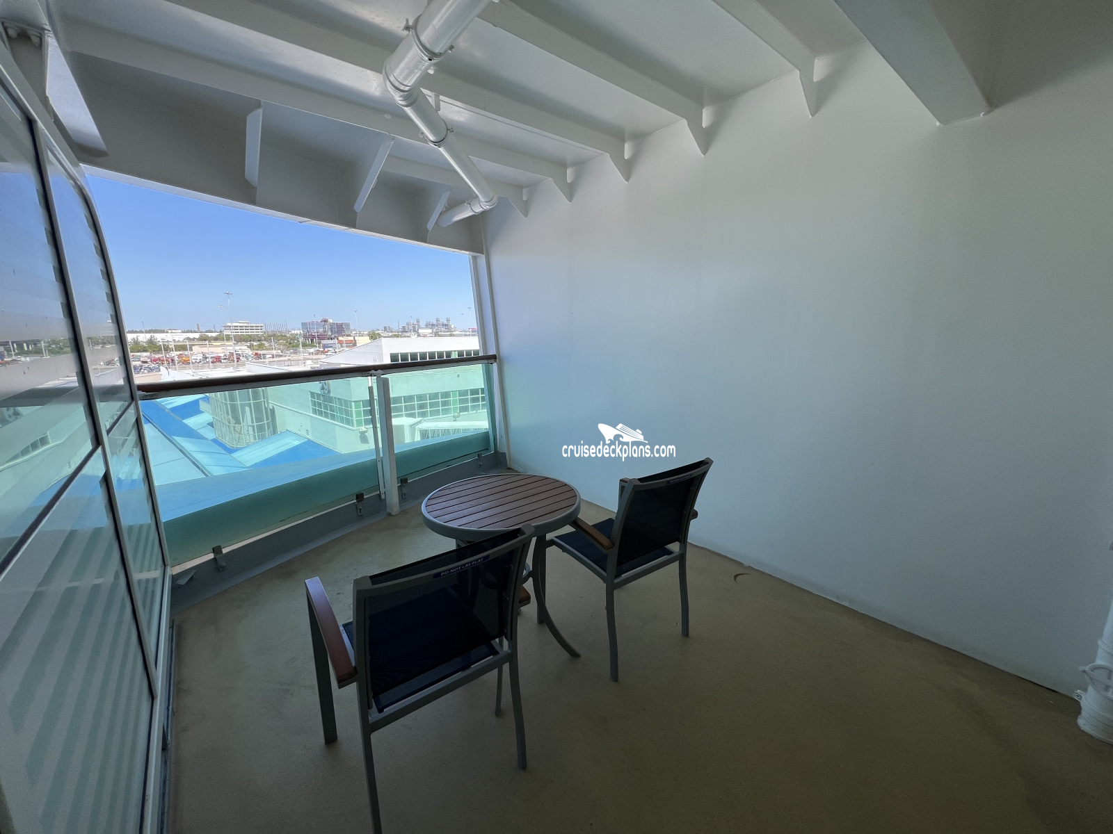 Staterooms 7064, 7066, 7142, 7564, 7506, 8058, 8060, 8558, 8560, 8162, 8164, 8662 & 8664 have partially obstructed views. Some balcony sizes are as small as 27 square feet.