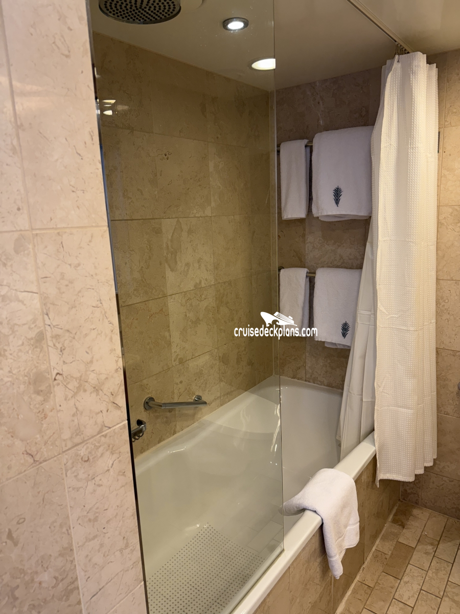 Butler Service / Priority Check In / Priority Debarkation / Priority Tender Boarding / Dining in the Stateroom / Afternoon Canapes / Afternoon Tea / Welcome Champagne / Exclusive Lounge / Exclusive Dinner Restaurant / Thick Cotton Robes / Pillow Menu / Access to Michael's Club (complimentary cocktails, appetizers, and a dedicated Concierge.) / Reserved theatre seating on Evening Chic nights / Main & specialty restaurant seating preferences / Custom premium mattress / Complimentary daily in-suite espresso and cappuccino / Luxury bath amenities / Oversized 100% cotton bath towels / Hansgrohe showerhead / Bottled water on Embarkation / Day Daily Delectables rotation of savory and sweet snacks. /