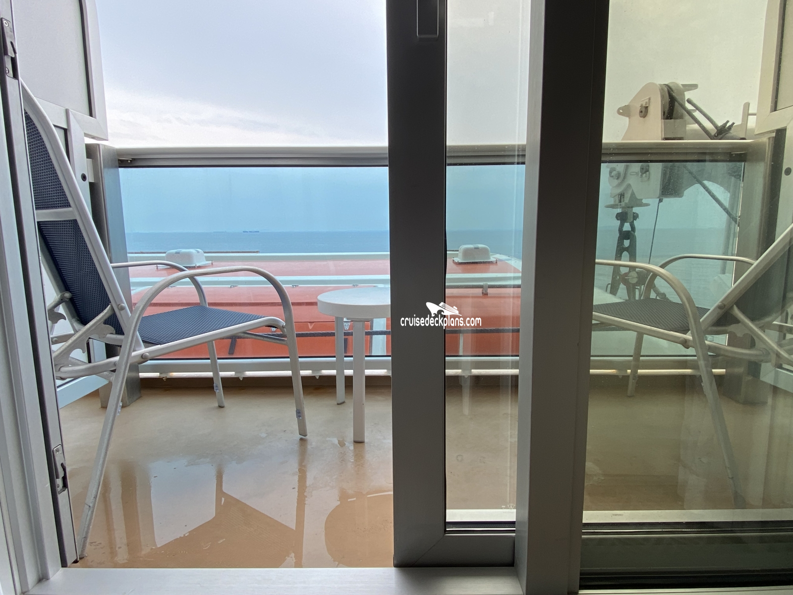 IMPORTANT NOTE: Category DV, DW, DZ have obstructed views due to solid steel railings or tops of lifeboats. Category DZ upper deck balconies can only be used while in port. When upper berth or sofa bed is used it will block balcony. Cabin sizes with balcony ranges from 233 to 291 square feet. Category DV is 253 square feet. Category DZ is 263 to 291 square feet including balcony. Category DB, DC, DD, DE, DF, DW are 233 square feet. Category DA is 249 square feet.