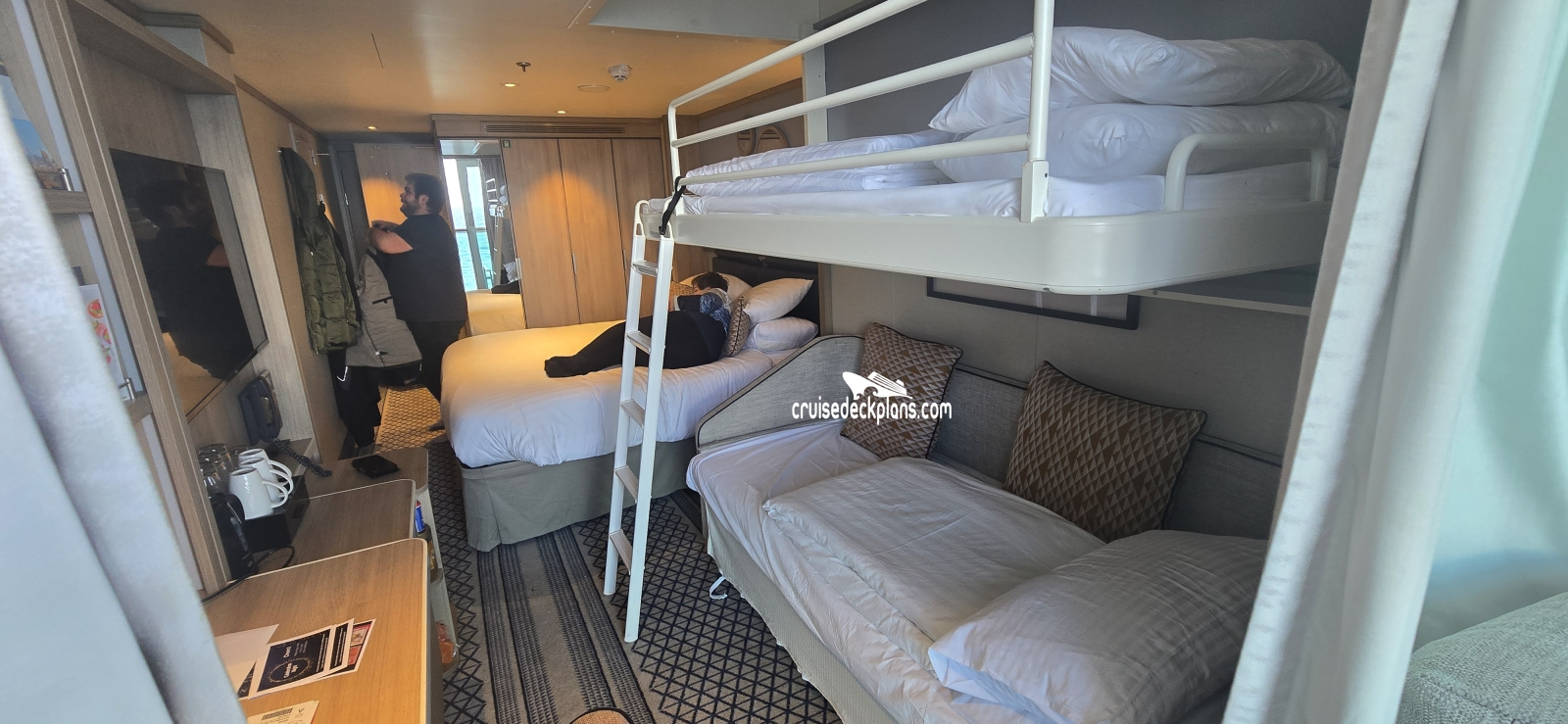 When three or four guests share a cabin with upper berths, the two lower berths cannot be pushed together for safety reasons.