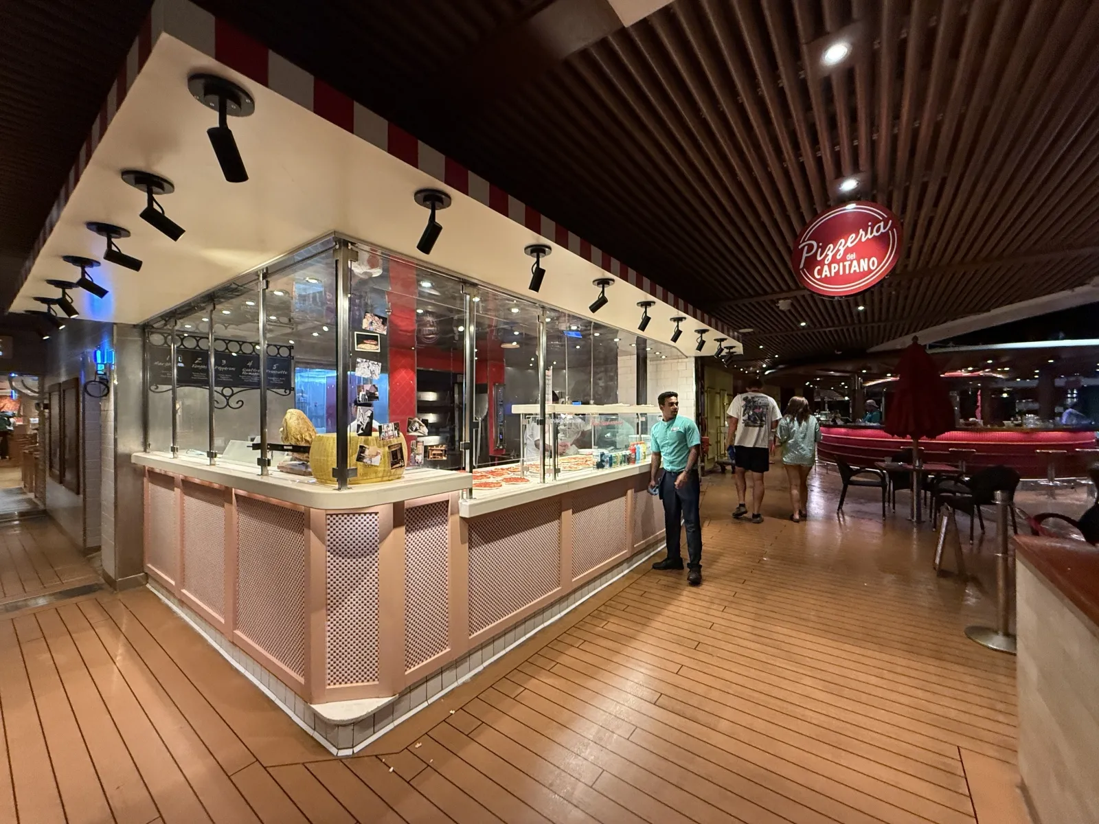 Carnival has teamed up with best-selling author, restaurateur and Food Network personality Guy Fieri to bring all the authentic appeal of a roadside burger shack to Guys Burger Joint, the cool poolside spot for hot burgers and hand-cut fries. Typically open from noon to 6:00 p.m.Pizzeria del Capitano