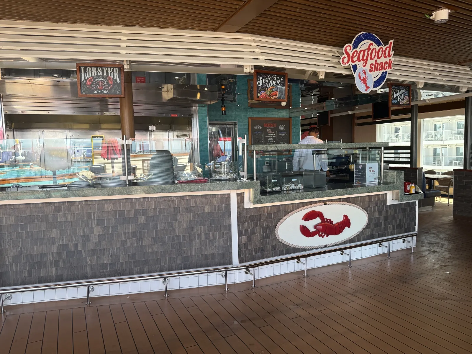 Join the party at this poolside bar featuring a great selection of frog-approved Caribbean rum-based concoctions available by the glass or pitcher, plus plenty of Carnivals signature private-label draft beer, ThirstyFrog Red.Seafood Shack