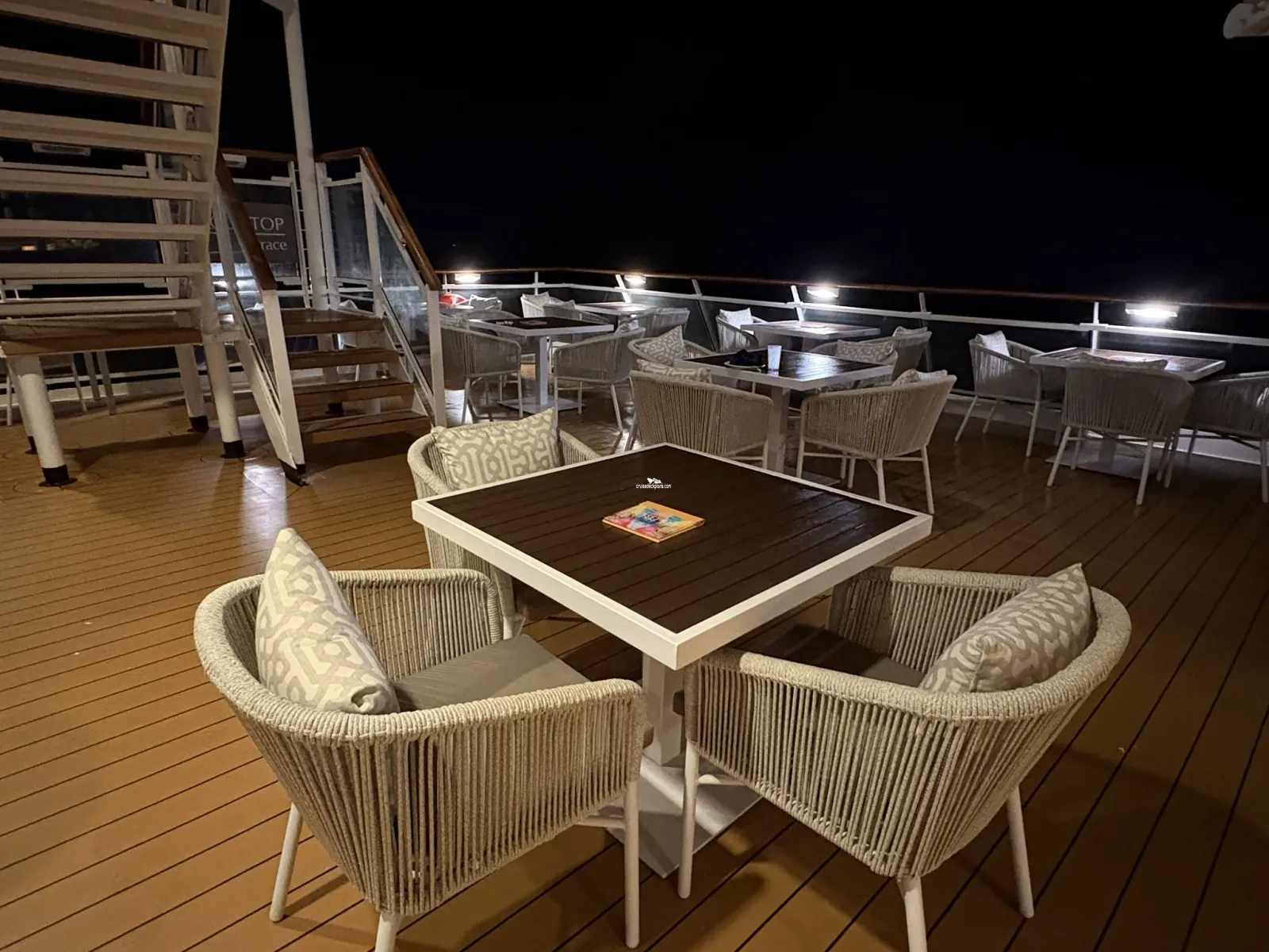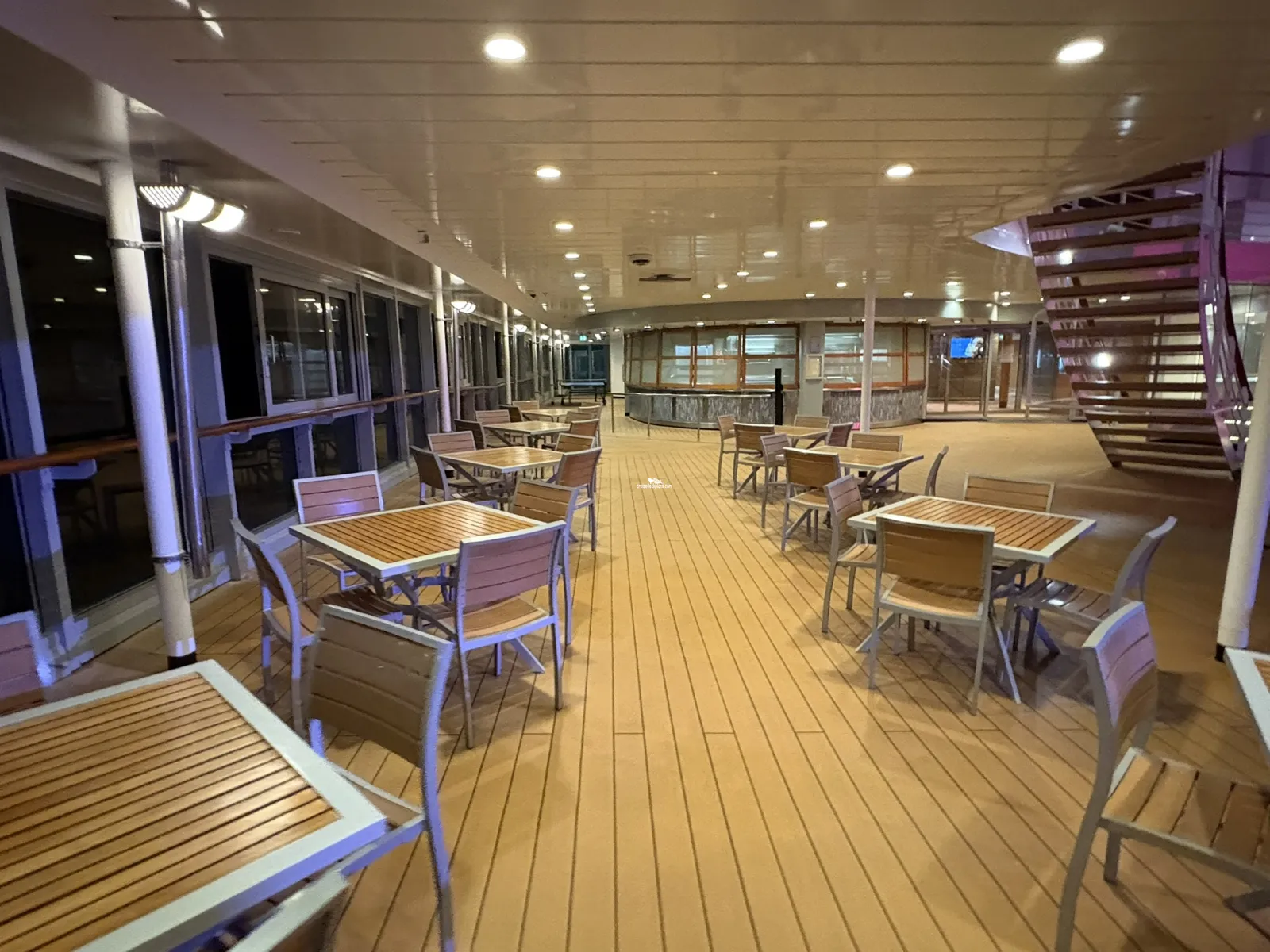 Outside bar and terrace for the Oceanview Cafe and Grill.Cabin Check Tool