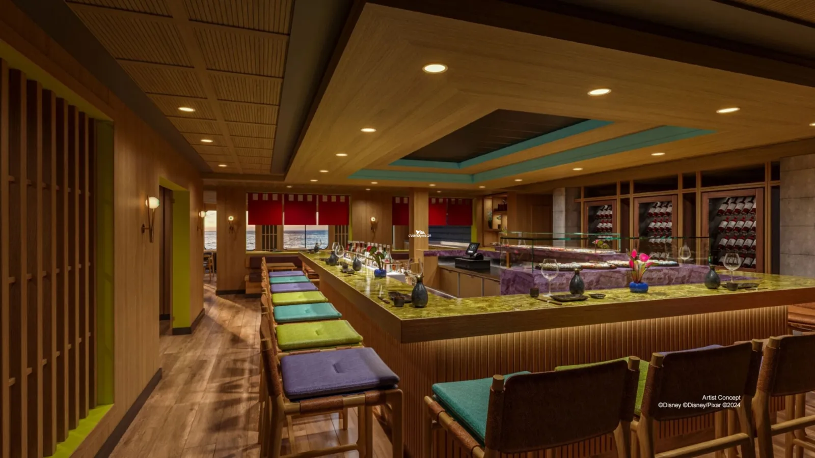 Immerse yourself in the enchanting underwater tales of The Little Mermaid, Finding Nemo, Lilo & Stitch and Luca at this expansive open-air retreat at the back of the ship. Savor tasty offerings set amid dazzling coral reefs and soft sunlight filtering through glass canopies. By night, witness the area transform into a wondrous bioluminescent paradise.Wayfinder Bay