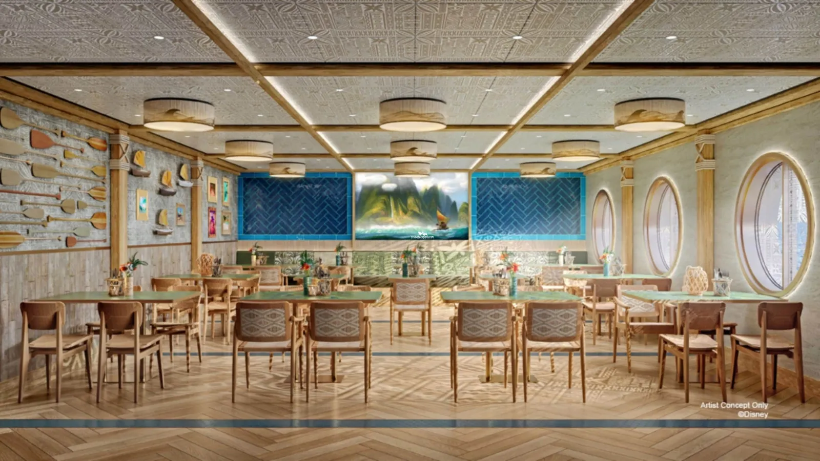 Outdoor oasis of relaxation and entertainment inspired by the Disney film Moana. Lounge on tiered deck seating, cool down with a refreshing beverage from the shaded Wayfinder Bar or unwind in the sparkling wading pool. The pool area, featuring a massive screen, also doubles as a unique performance venue for interactive events and live shows like Moana: Call of the Sea.Bewitching Boba and Brews