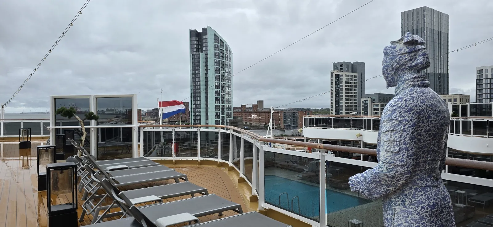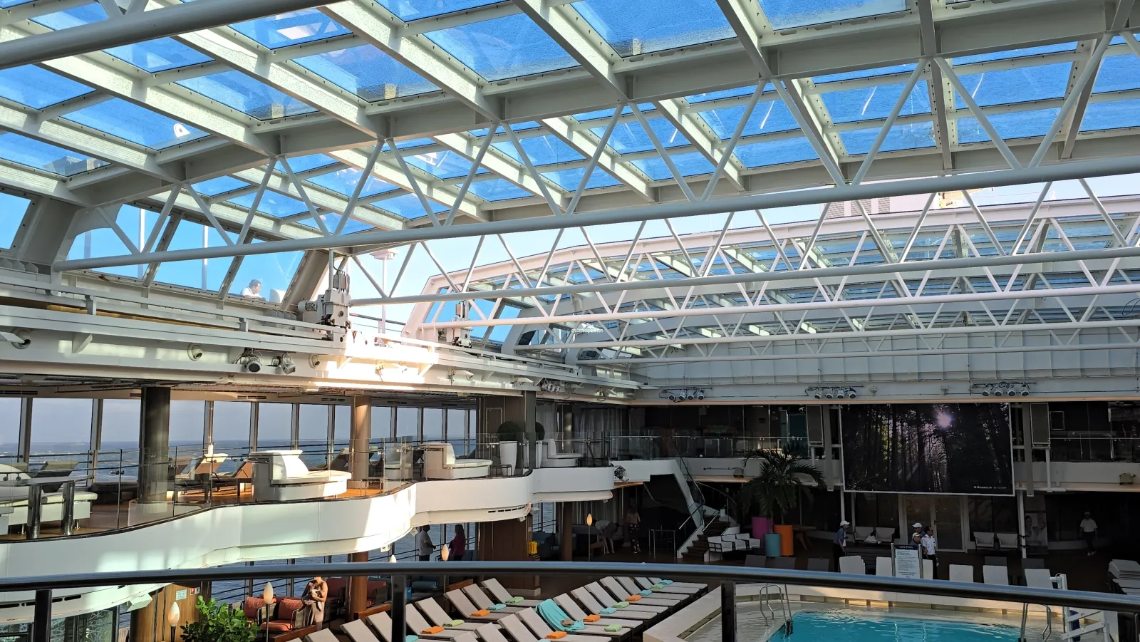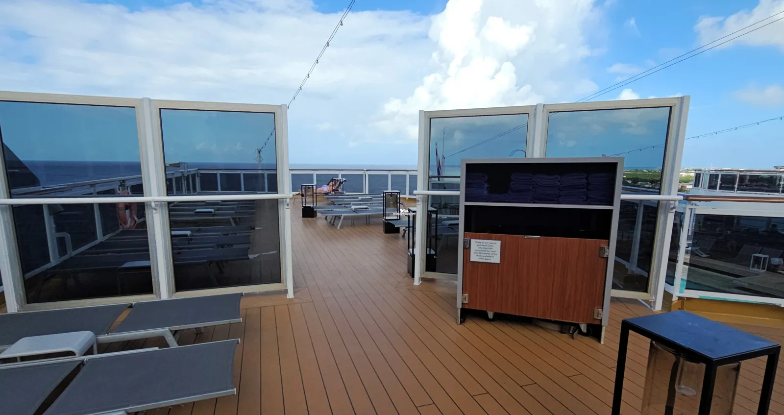 Deck above pool areas. Offers places to lounge in the sun, shuffle board, and observation points.Cabin Check Tool