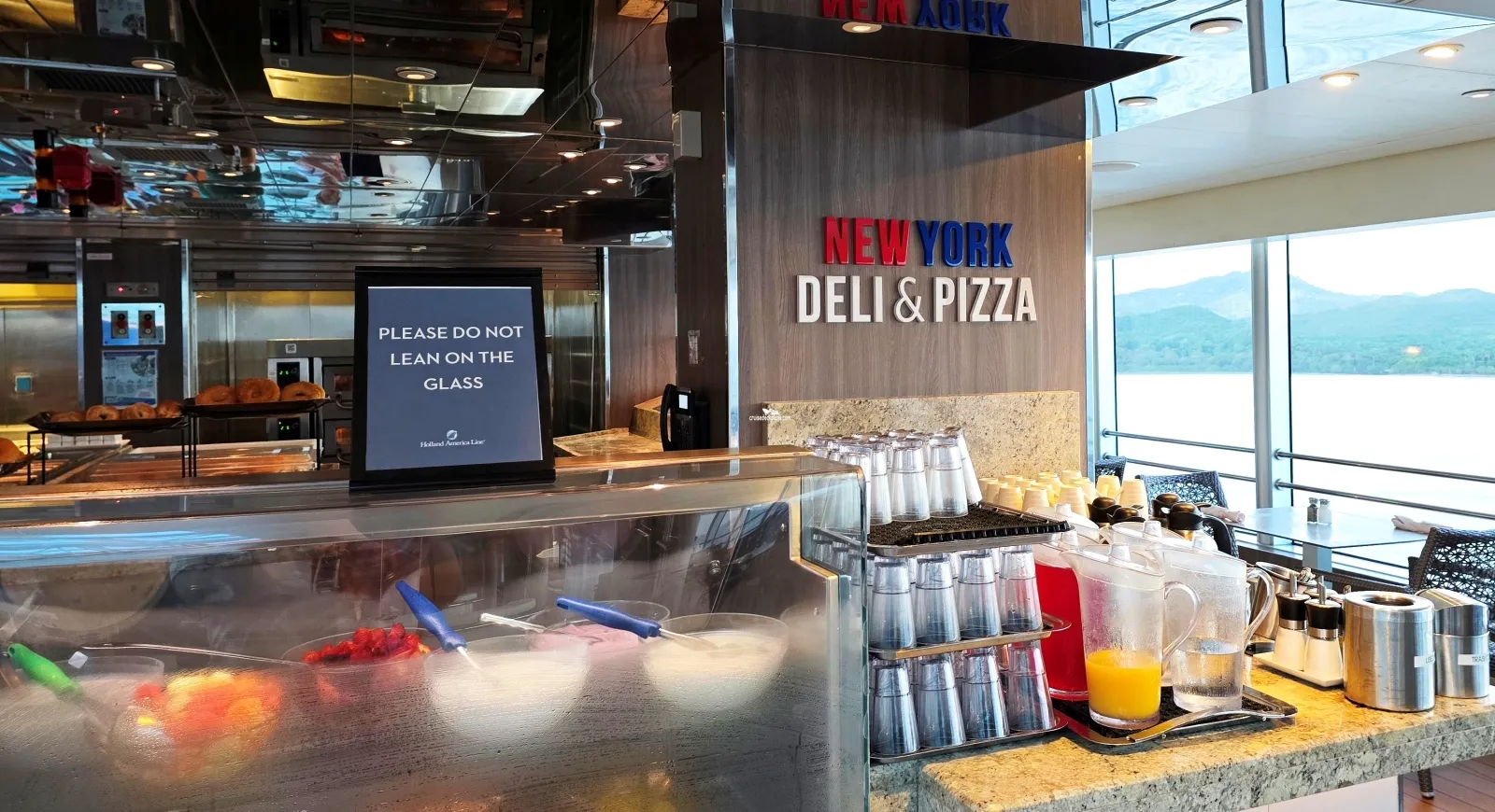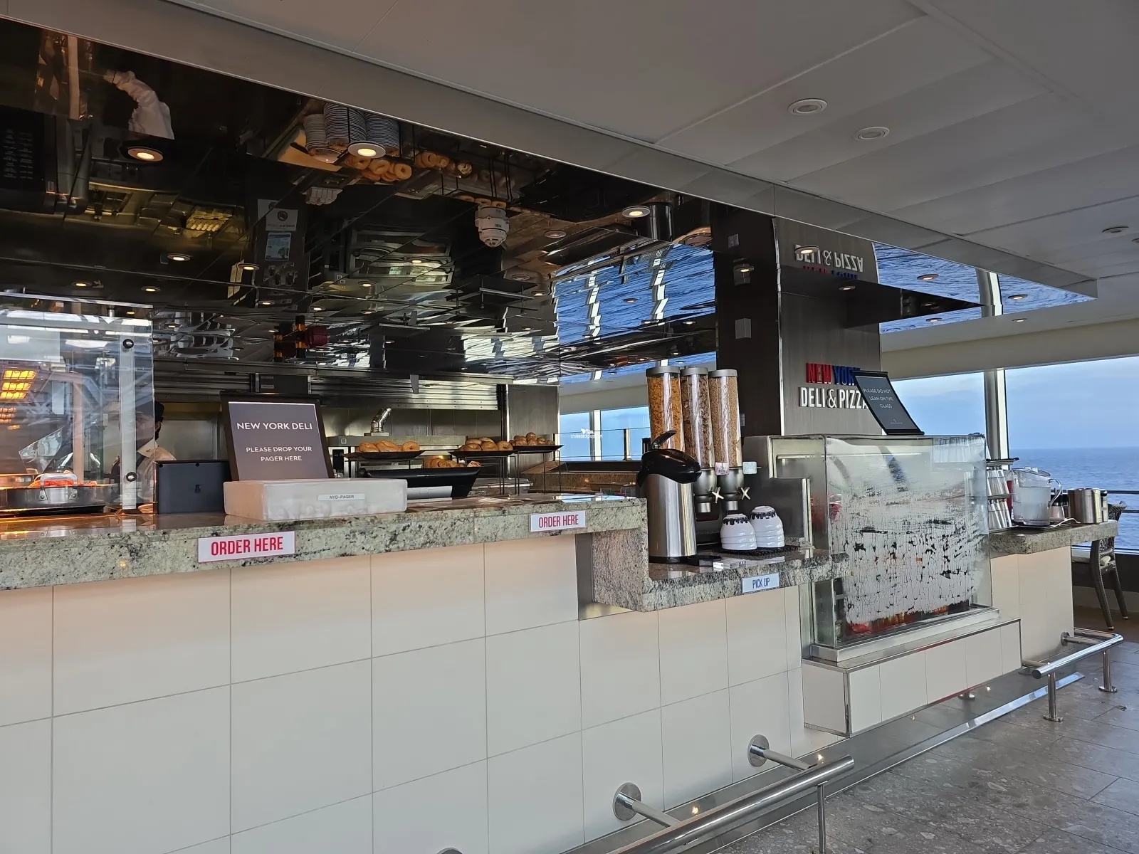 Reservation only Asian restaurant (surcharge required for dinner, but serves a complimentary lunch). Seats 140 people. Sushi bar with 7 seats for lunch and dinner (surcharge required).New York Deli & Pizza