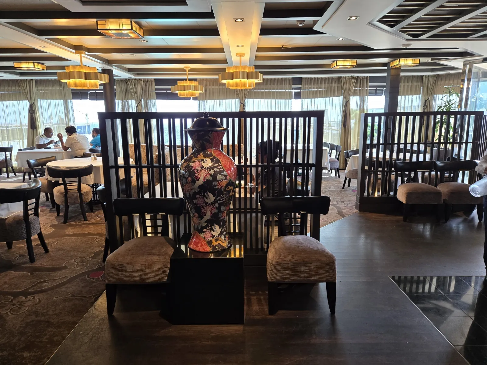 Reservation only Asian restaurant (surcharge required for dinner, but serves a complimentary lunch). Seats 140 people. Sushi bar with 7 seats for lunch and dinner (surcharge required).New York Deli & Pizza