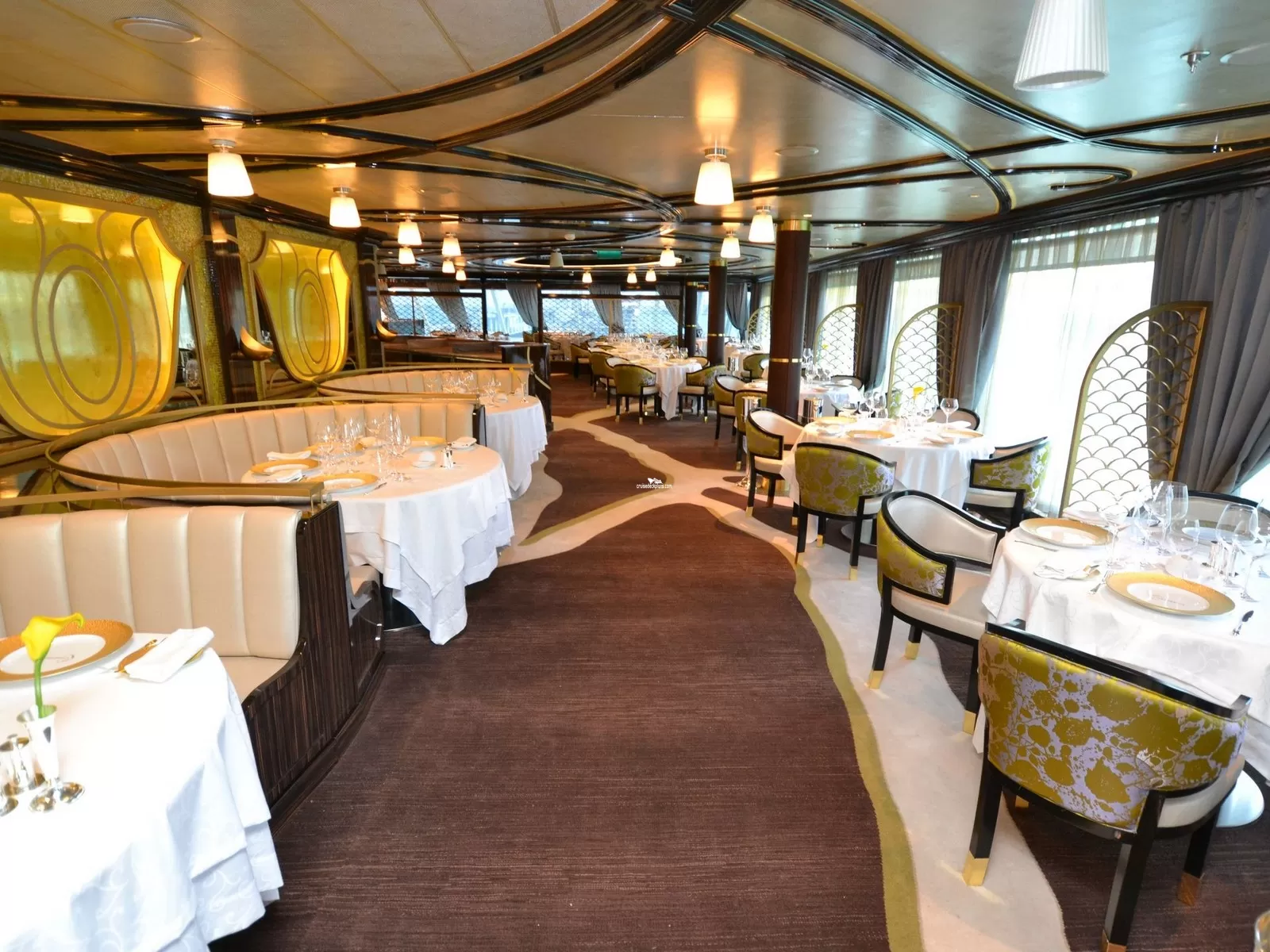 French specialty restaurant located on aft (portside) of ship. Has floor to ceiling windows for enjoying the views while you dine.Cabin Check Tool