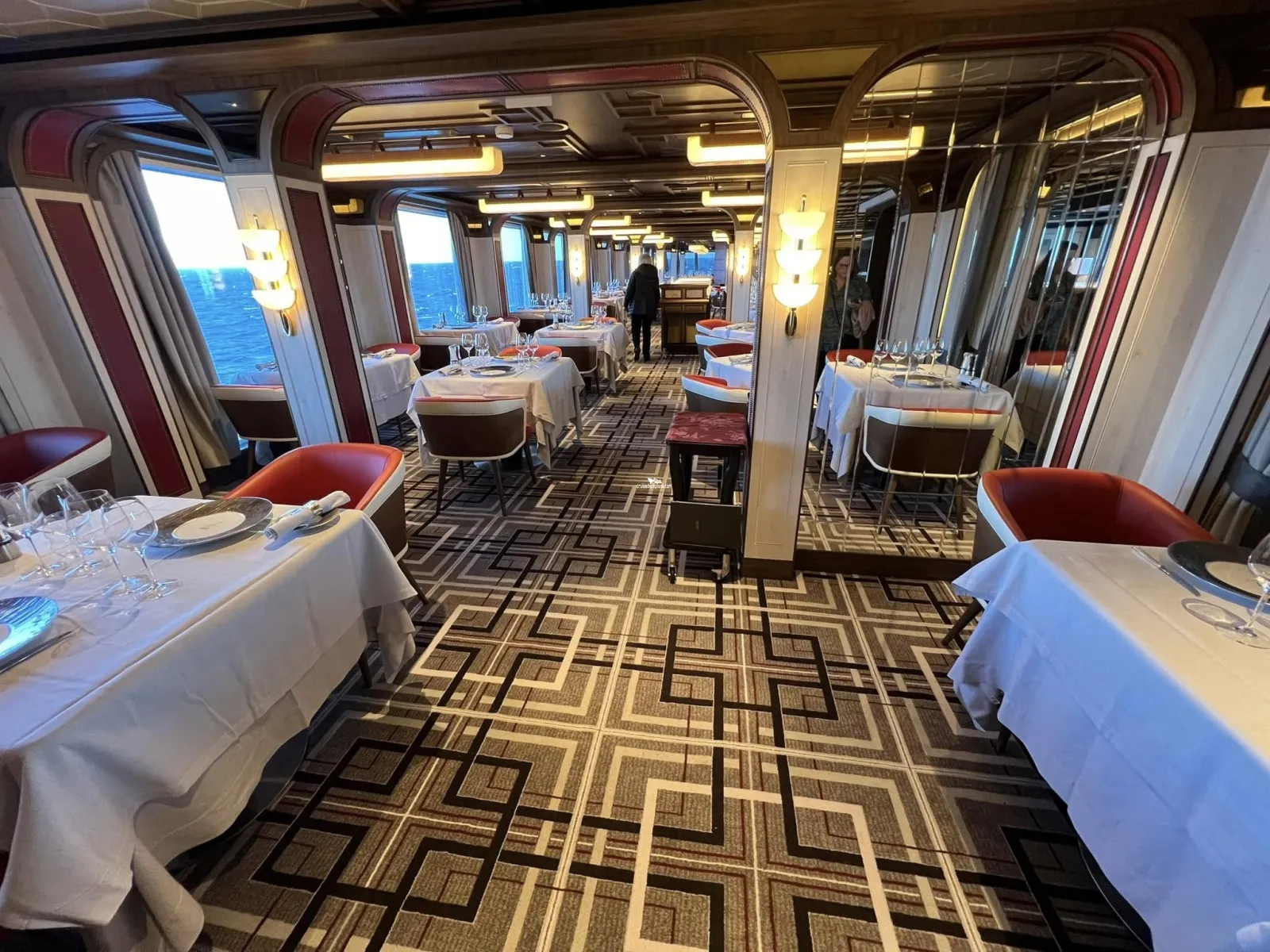 French specialty restaurant located on aft (portside) of ship. Has floor to ceiling windows for enjoying the views while you dine.Cabin Check Tool