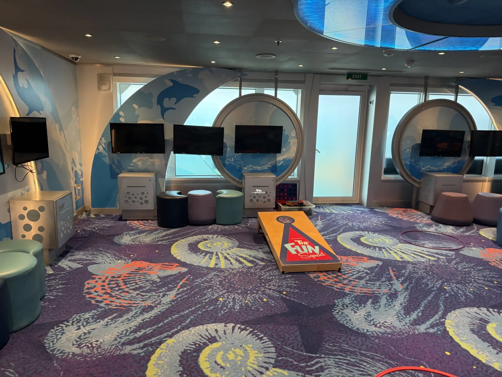 Located deck 11 midship. Marine-themed camp and program during the day for ages 2 to 11. During the evening serves as Night Owls babysitting for kids 6 months to 11 years from 10:00 p.m. to 1:00 a.m. Hours on sea days: 10:00am-1:00pm; 2:00pm-5:00pm; 7:00pm-10:00pm. Hours on port days: Arrival-2:00pm (freeplay); 2:00pm-5:00pm; 7:00pm-10:00pm.Deck 11