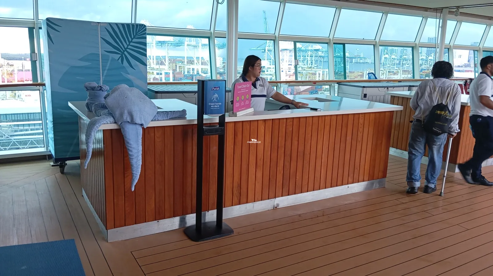 The Solarium pool is specifically for guests aged 18 and older and is 4ft 11 inches (1.51m) deep. With shaded areas and an array of sun loungers, towering palm trees and hammocks it also features two cantilevered whirlpools that extend twelve feet beyond the sides of the ship and 112 feet above the ocean.Splash Away Bay