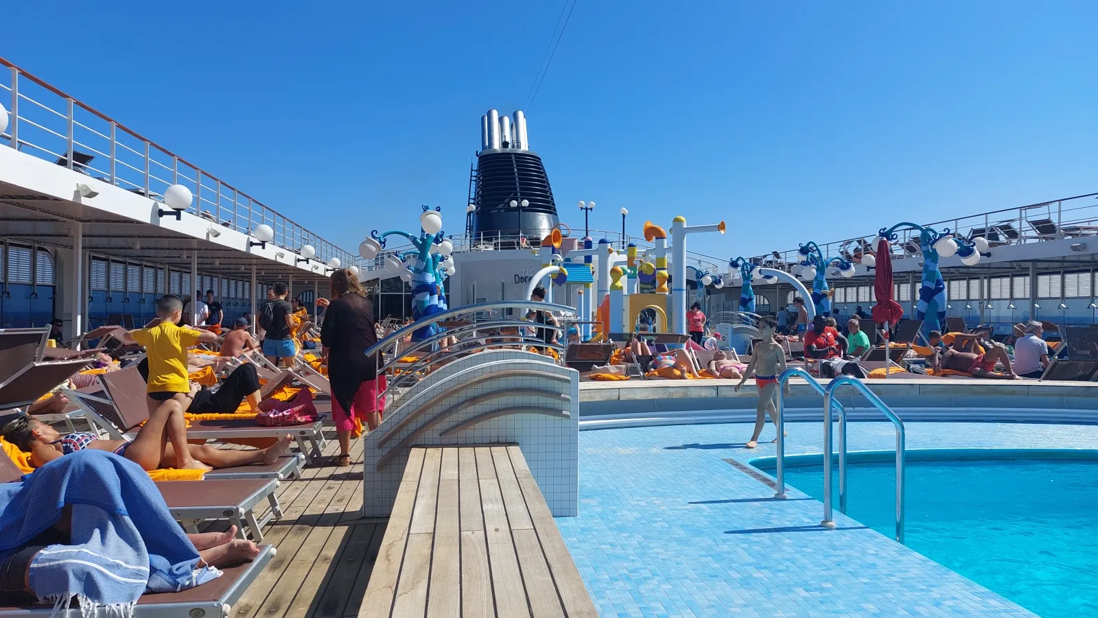The ship's self-serve buffet restaurant, seating 380 guests and is open for breakfast, lunch and dinner.Le Piscine Pool Area