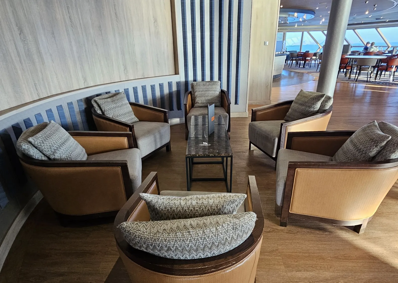 This tool will help you see what is on the deck above and the deck below your stateroom. Don't be surprised by loud chair scraping noise above you.