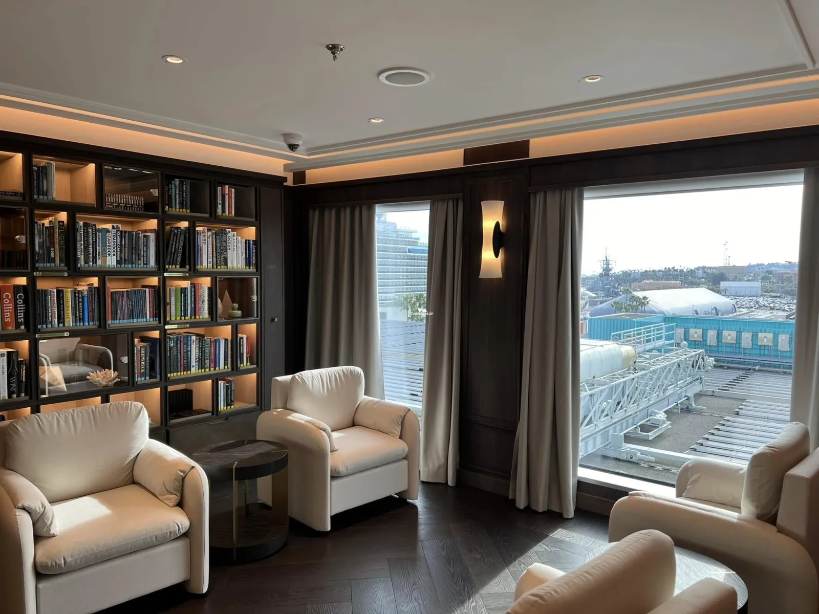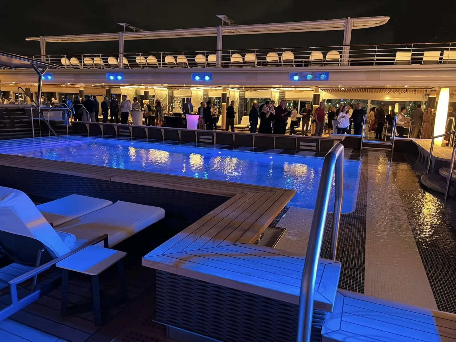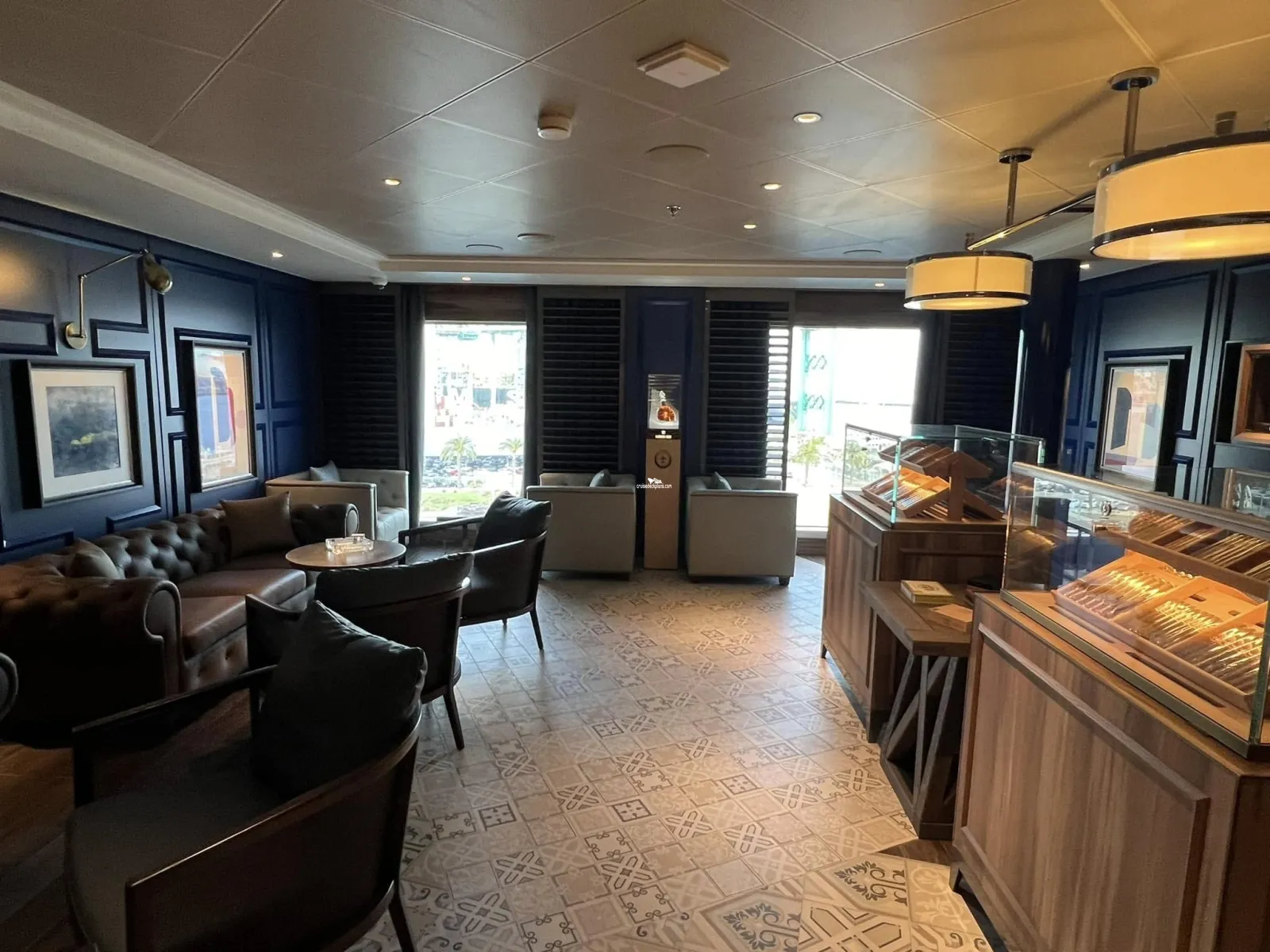 Located in the front of the ship, offers 270 degree views through floor-to-ceiling slanted windows. Has a full bar and outside seating area.Card Room