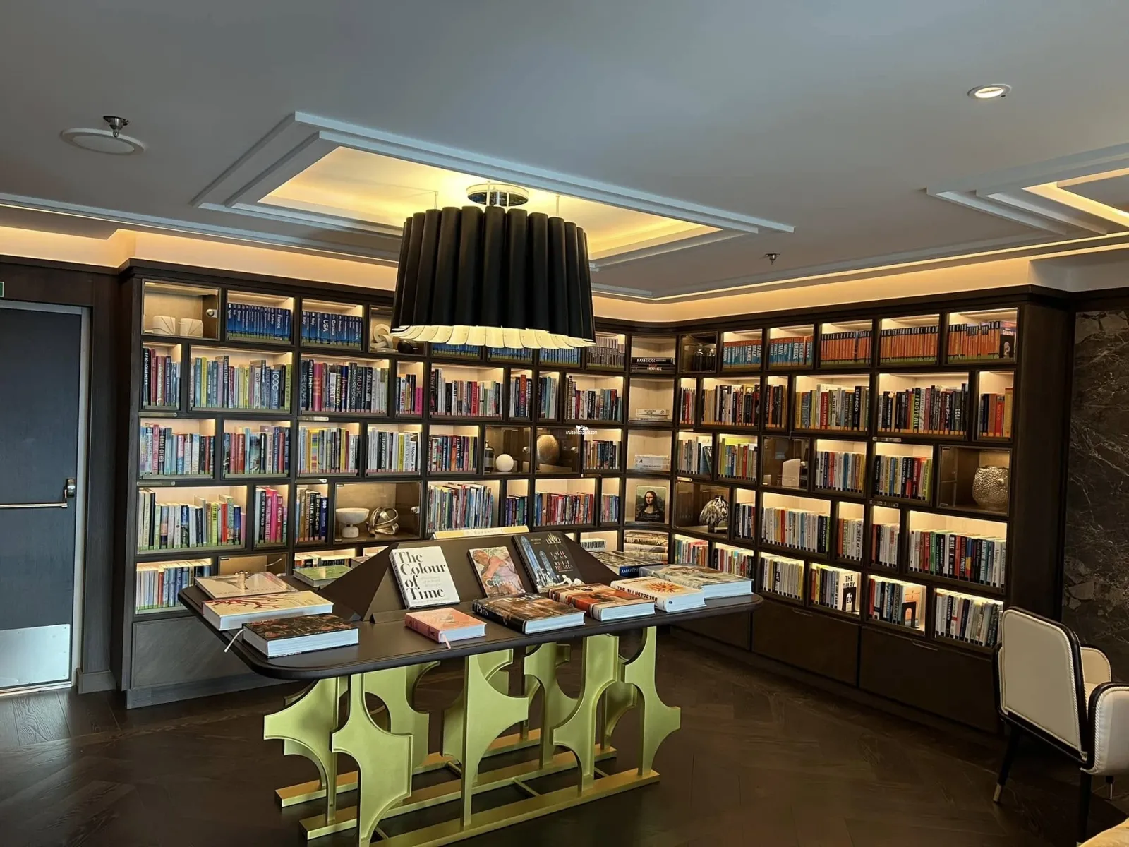 Cigar club with leather armchairs. Sells fine cigars and premium liquor.Library