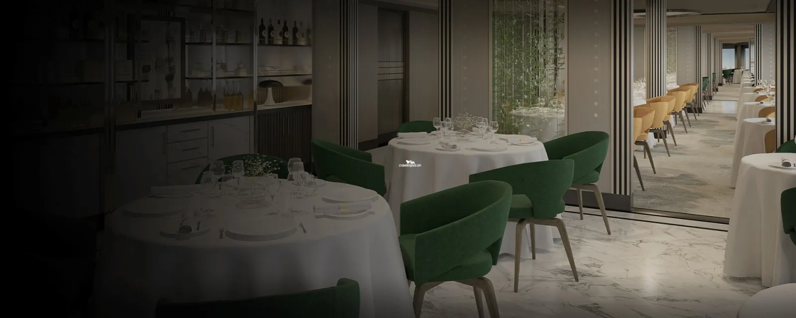 Steakhouse restaurant in aft of ship (starboard side). Reservations required.Chartreuse