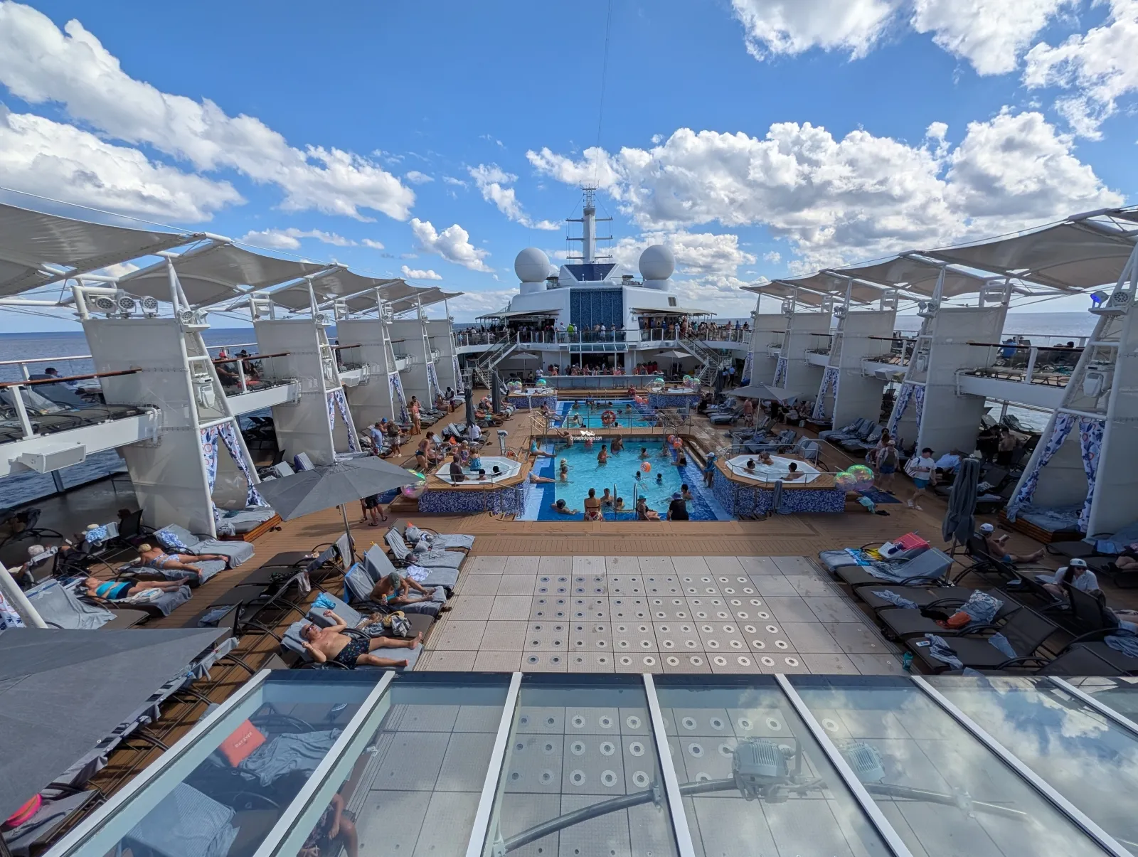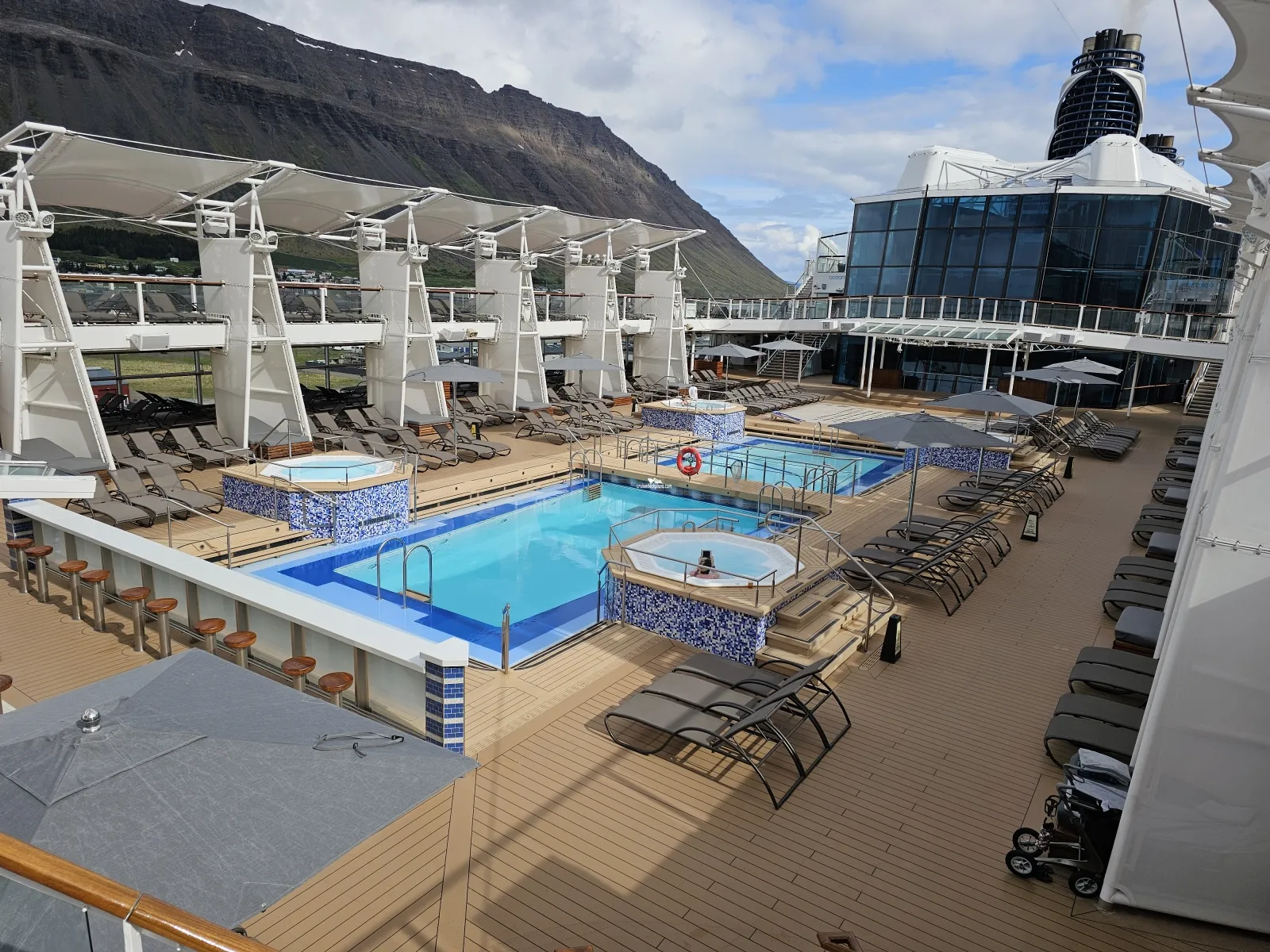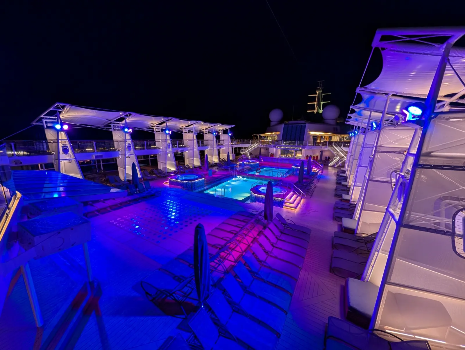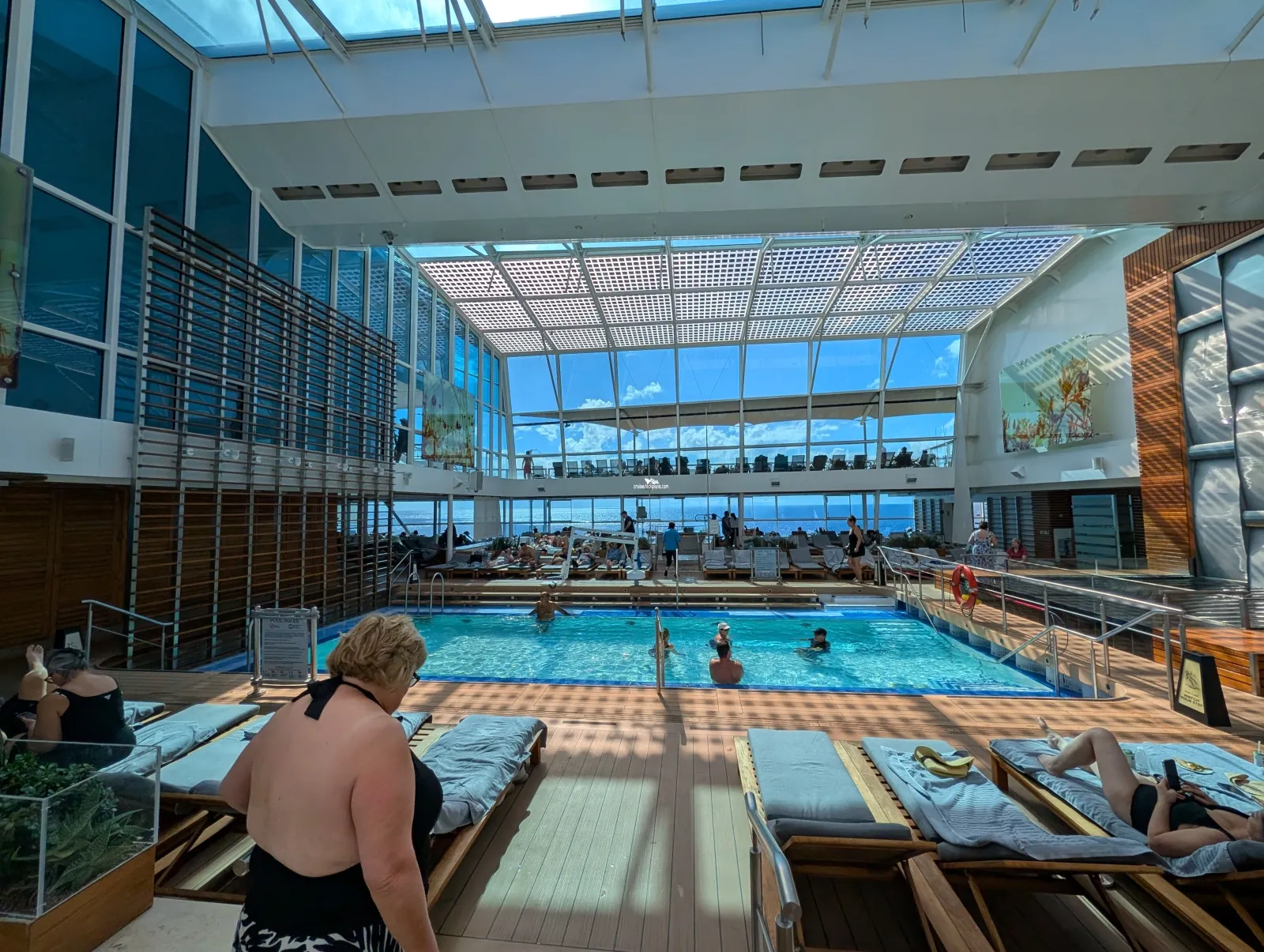 Features relaxing tranquil music, around nine heated ceramic loungers overlooking the front of the ship, a sauna, eucalyptus infused steam room and tropical rain showers.Solarium